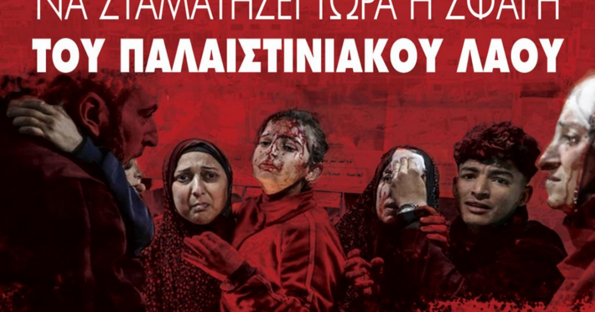 Να διεκδικήσουμε από την ελληνική κυβέρνηση άμεση διακοπή σχέσεων με το κράτος του Ισραήλ και ουσιαστική παρέμβαση για τον τερματισμό της γενοκτονίας.