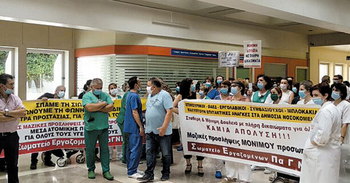 Γι’ αυτό, συνεχίζεται η μείωση του αριθμού των μονίμων εργαζομένων στην Υγεία ακόμη και εν μέσω επιδημίας. Γι’ αυτό απορρίπτεται από όλες τις κυβερνήσεις το αίτημά μας για μονιμοποίηση των συμβασιούχων συναδέλφων και σε δεκάδες νοσοκομεία προχωρεί η διαδικασία για την ανάθεση της καθαριότητας, της φύλαξης και της σίτισης σε εργολαβικές εταιρείες.