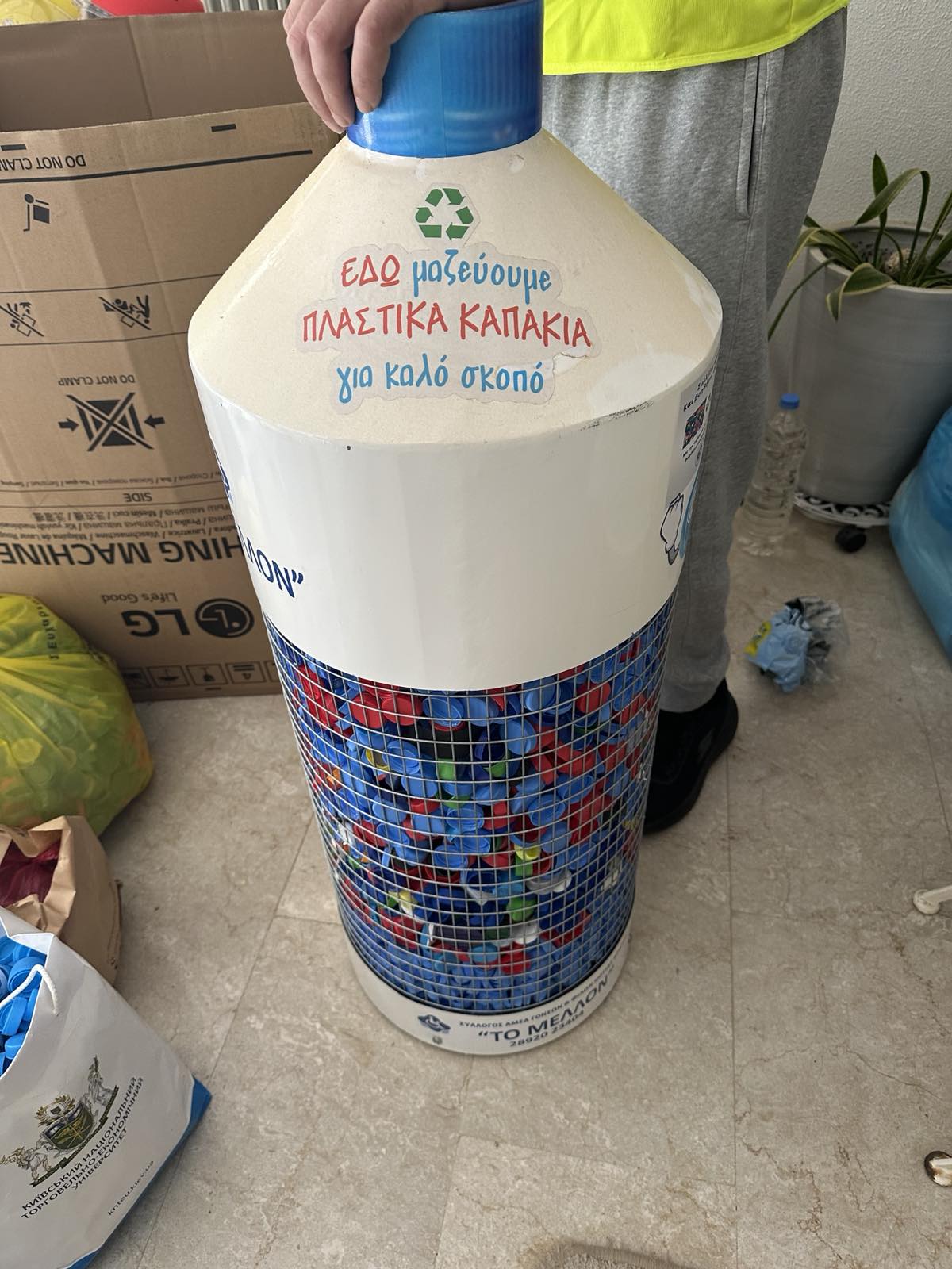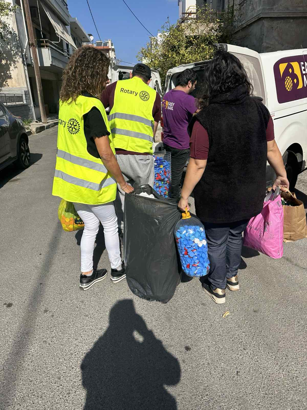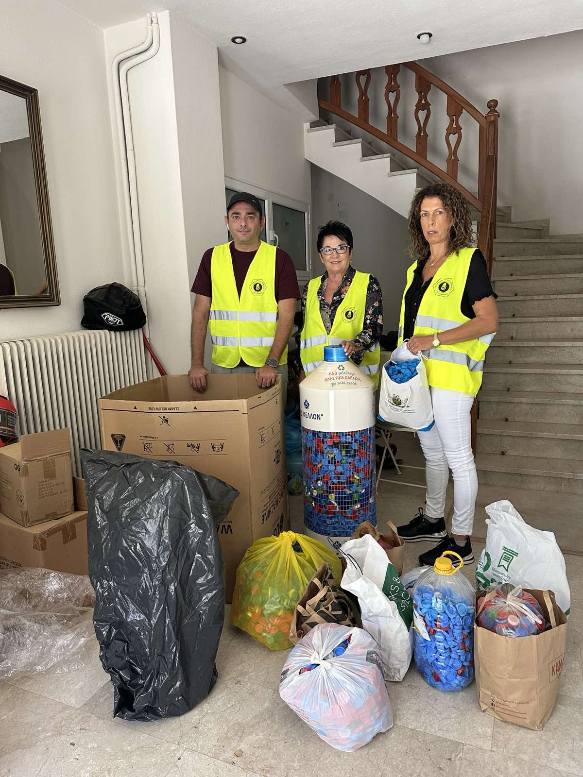 Τα καπάκια παρέλαβαν για λογαριασμό του Συλλόγου «Το Μέλλον» στελέχη της Ταχυδρομικής Εταιρίας «Easy Mail», η οποία βοηθάει συλλόγους και φορείς στο κοινωφελές έργο τους.