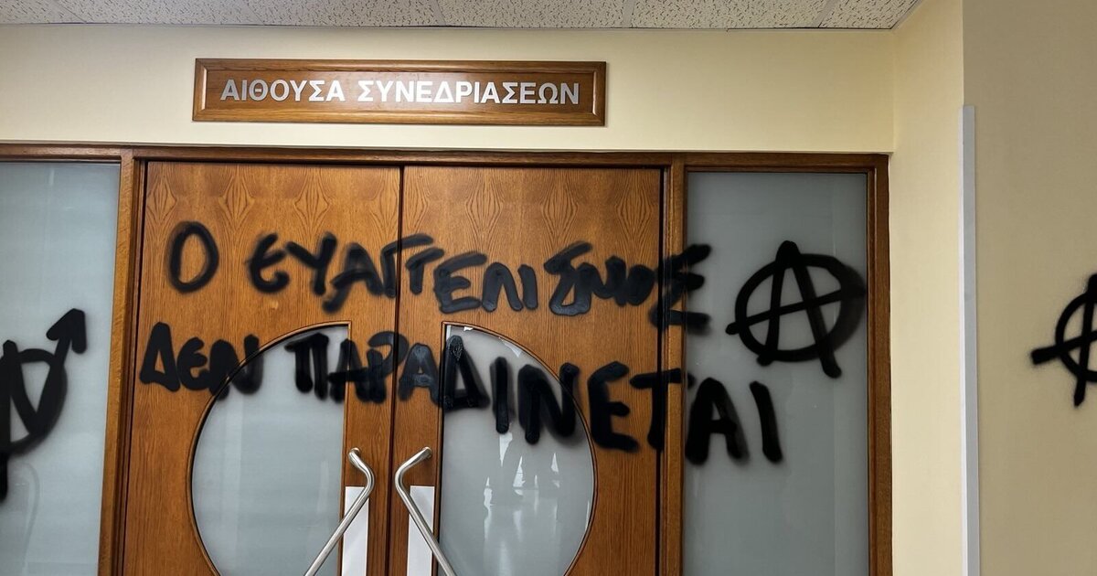 Άγνωστοι έγραψαν συνθήματα στους τοίχους, σε πόρτες, ενώ πέταξαν τρικάκια.