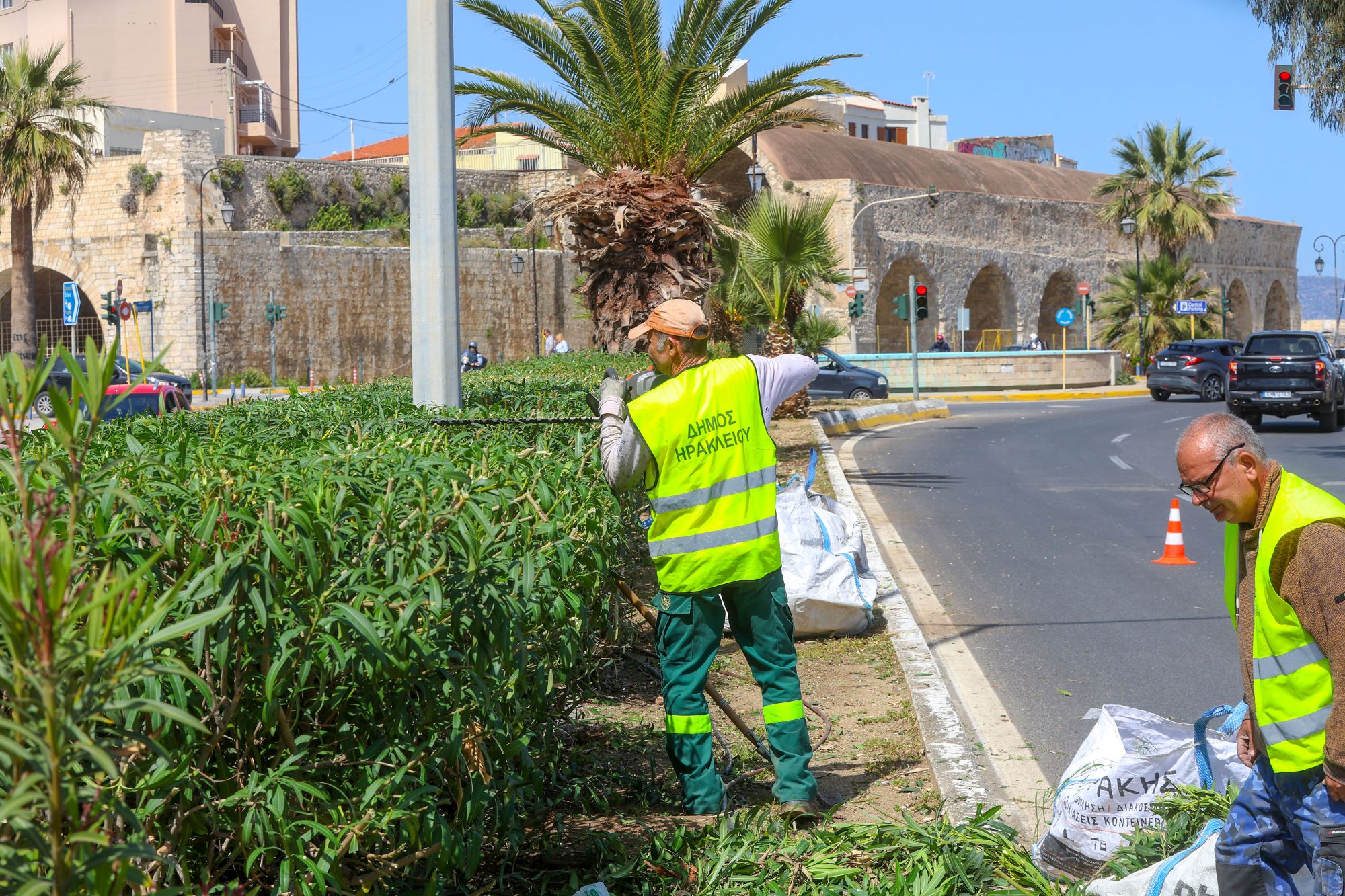 Σύμφωνα με τον υφιστάμενο σχεδιασμό, ο εντατικός καθαρισμός του οδοστρώματος από τα συνεργεία της Υπηρεσίας και από το ειδικό σάρωθρο του Δήμου Ηρακλείου ξεκίνησε άμεσα και παράλληλα με την έναρξη των απαραίτητων εργασιών συντήρησης πρασίνου. Όπως δήλωσε ο Νίκος Γιαλιτάκης «Όπως είχαμε δεσμευτεί ως Δημοτική Αρχή, από την πρώτη μέρα παραχώρησης της χερσαίας ζώνης στον Δήμο Ηρακλείου, ξεκινήσαμε άμεσα τις επεμβάσεις με προτεραιότητα στον καθαρισμό του οδοστρώματος, αλλά και στις εργασίες πρασίνου. Από χθες Μεγάλη Τρίτη, το Τμήμα Πρασίνου έχει προχωρήσει σε εκτεταμένες εργασίες χορτοκοπής των ζιζανίων που είχαν αναπτυχθεί, αρχής γενομένης από την νησίδα επί της παραλιακής λεωφόρου για λόγους ασφαλείας οδηγών και πεζών καθώς είχε περιοριστεί η ορατότητα. Θα συνεχιστεί ο καθαρισμός με το σάρωθρο, και θα προχωρήσουν οι ξυλοκοπές στο σύνολο του παραλιακού μετώπου για την βελτίωση της προσβασιμότητας. Επίσης, θα υπάρξουν περιορισμένες κλαδεύσεις σε δέντρα όπου κρίνεται απαραίτητο. Και βέβαια στην πορεία θα φροντίσουμε για την ευρωστία των φυτών και την καταπολέμηση των ασθενειών».