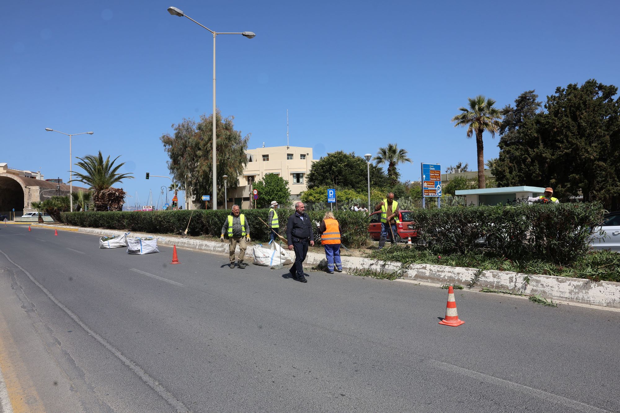 Χωρίς καμία καθυστέρηση, όπως είχε προαναγγείλει ο Δήμαρχος Ηρακλείου Αλέξης Καλοκαιρινός στο Δημοτικό Συμβούλιο, ξεκίνησε η συντονισμένη επιχείρηση καθαριότητας, αποκατάστασης και συντήρησης πρασίνου και οδοφωτισμού, μετά την παραχώρηση της χερσαίας ζώνης του Λιμένος στο Δήμο Ηρακλείου με την έκδοση του σχετικού ΦΕΚ.