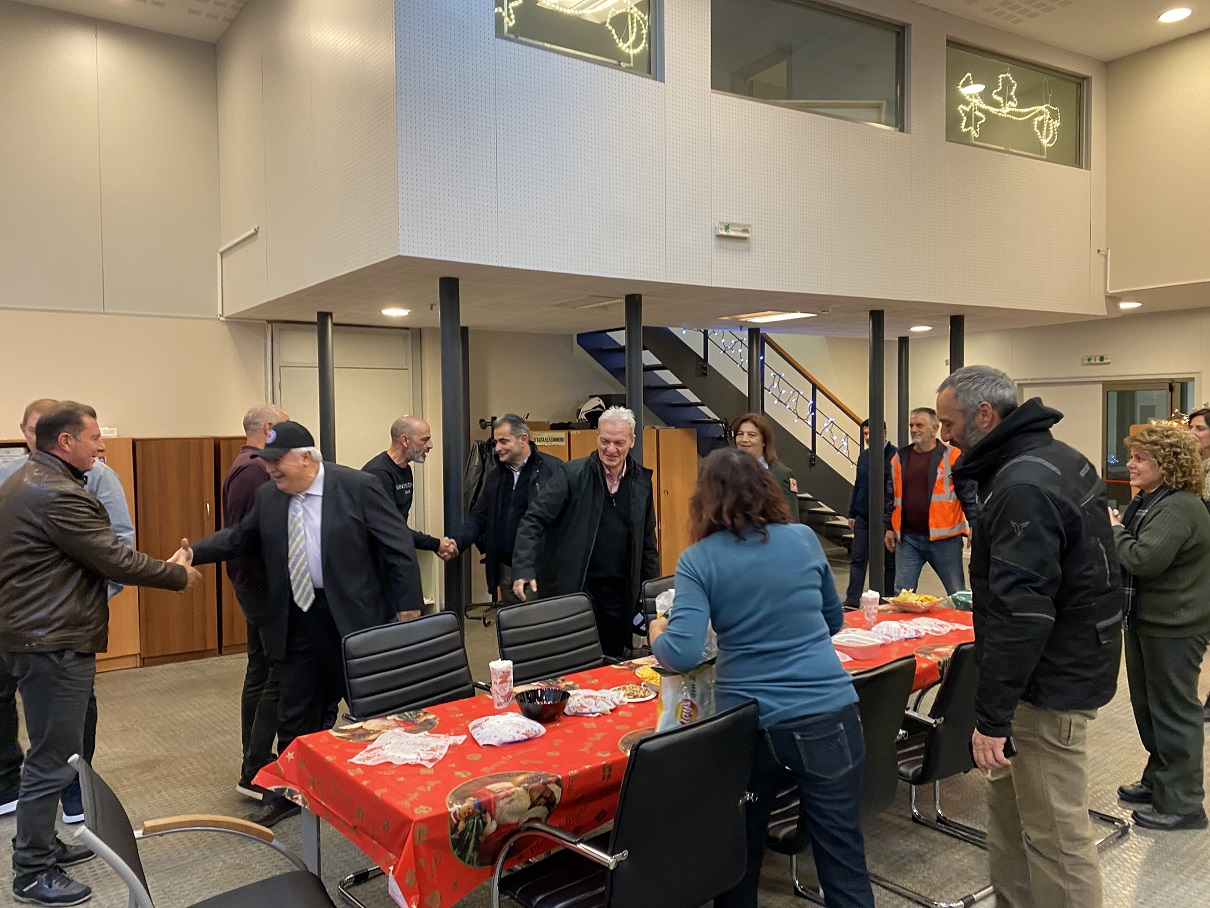 Συνεχίζοντας τις συμβολικές αλλά ταυτόχρονα και ουσιαστικές επισκέψεις την παραμονή της Πρωτοχρονιάς, ο Δήμαρχος Ηρακλείου Αλέξης Καλοκαιρινός βρέθηκε το βράδυ, στο τέλος της βάρδιας, στο πλευρό των εργαζομένων στις Υπηρεσίες της Δημοτικής Αστυνομίας και της Πολιτικής Προστασίας, συνοδευόμενος από τους Αντιδημάρχους, Δημοτικής Αστυνομίας, Αποκέντρωσης & Ανάπτυξης της Υπαίθρου Μανόλη Χαιρέτη και Πολιτικής Προστασίας Γιώργο Καραντινό.