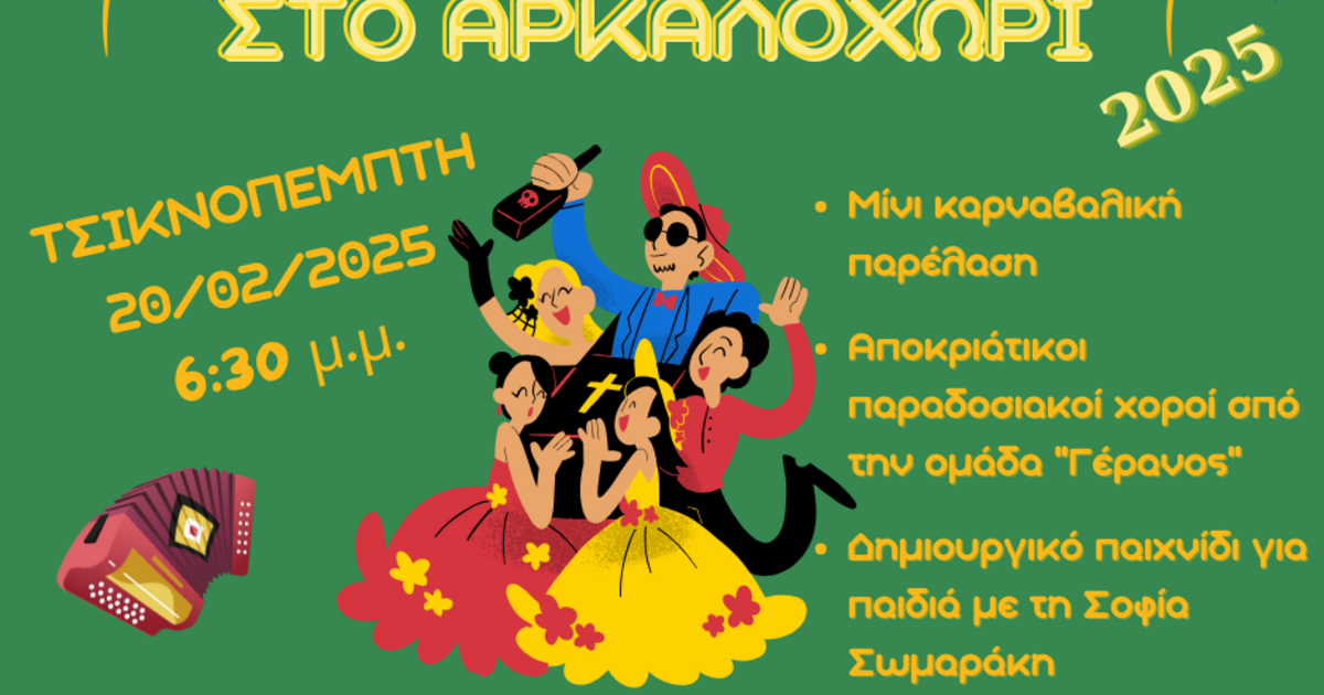 Την Τσικνοπέμπτη το ραντεβού στο Αρκαλοχώρι είναι στις 18:30 το απόγευμα όπου έξω από τα εμπορικά καταστήματα του Αρκαλοχωρίου οι ψησταριές θα έχουν την τιμητική τους ενώ θα πραγματοποιηθεί και μίνι καρναβαλική παρέλαση! Θα ακολουθήσουν αποκριάτικοι παραδοσιακοί χοροί από την ομάδα "Γέρανος" και δημιουργικό παιχνίδι για παιδιά με τη Σοφία Σωμαράκη.