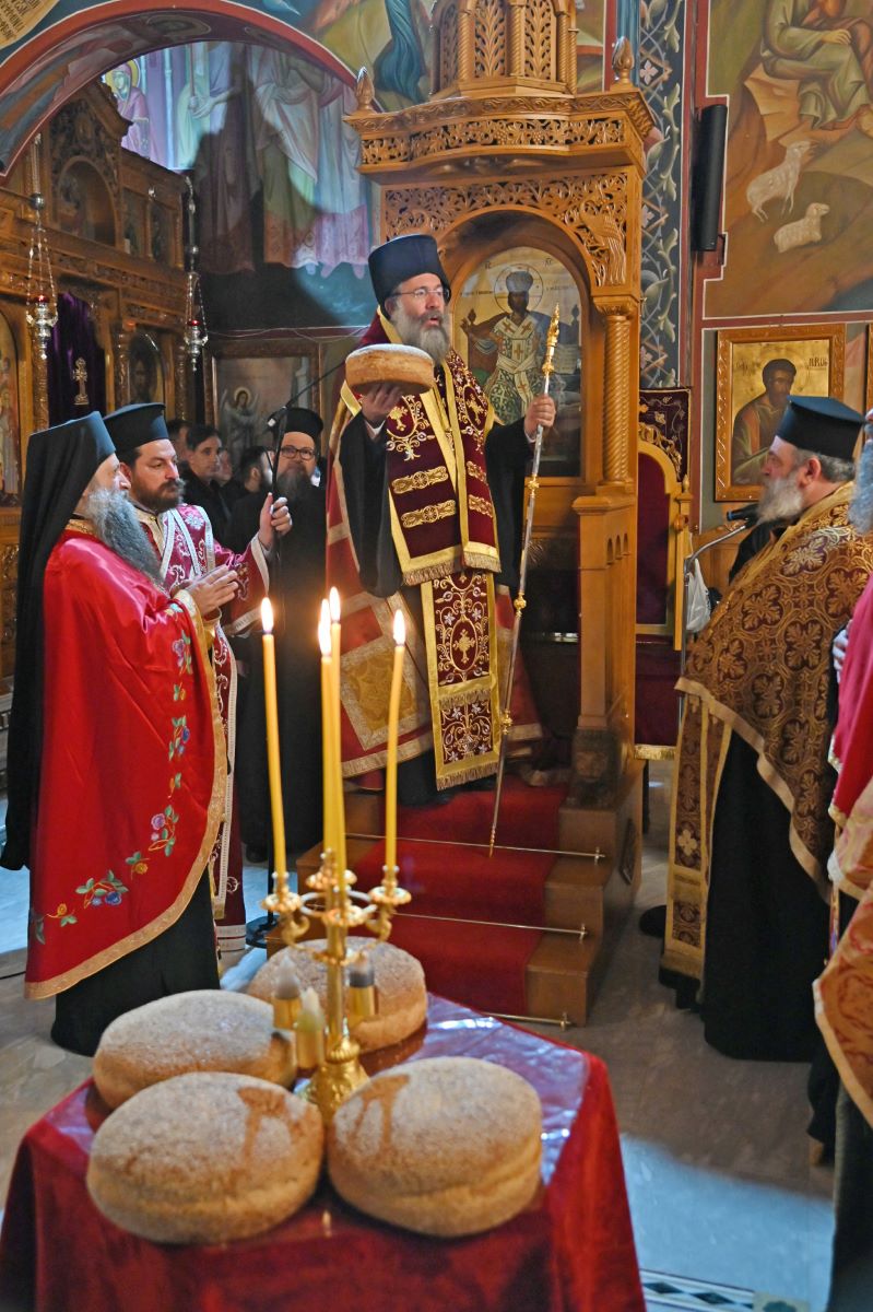 Ακολούθως, ο Σεβασμιώτατος επέδωσε εύφημο μνεία της Ιεράς Μητροπόλεως και αναμνηστικό επετειακό αντιδώρημα σε όλους τους δωρητές, οι οποίοι, με διάφορους τρόπους, συνέβαλαν και στήριξαν την πρόσφατη ανακαίνιση των δαπέδων του Ιερού Ναού των Αγίων Τεσσάρων Μαρτύρων.