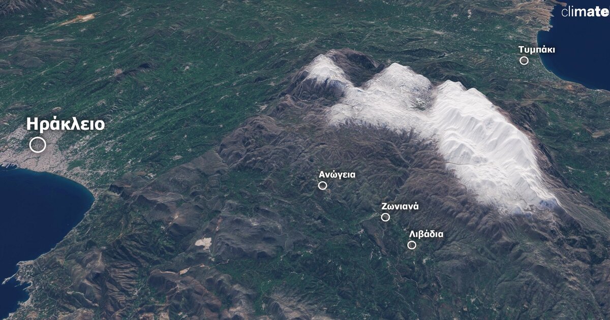 🛰️ Δορυφορικά δεδομένα πολύ υψηλής ανάλυσης του ευρωπαϊκού δορυφόρου Sentinel-2, που πέρασε πάνω από τη χώρα μας το μεσημέρι της Παρασκευής 7 Μαρτίου 2025, τα οποία ανέλυσε και επεξεργάστηκε η επιστημονική ομάδα του Climatebook σε τρισδιάστατη μορφή (3D), παρουσιάζουν την χιονοκάλυψη στον Ψηλορείτη της Κρήτης.
