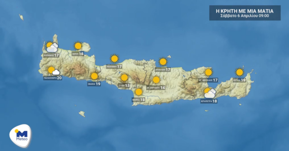 Γενικά αίθριος με αραιές νεφώσεις από το βράδυ, αναμένεται να είναι ο καιρός στην Κρήτη το Σάββατο.