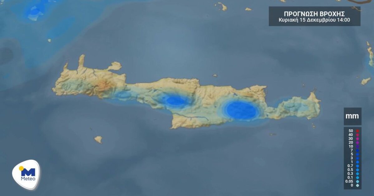 Νεφώσεις παροδικά αυξημένες με τοπικές βροχές αναμένονται την Κυριακή στην Κρήτη.
