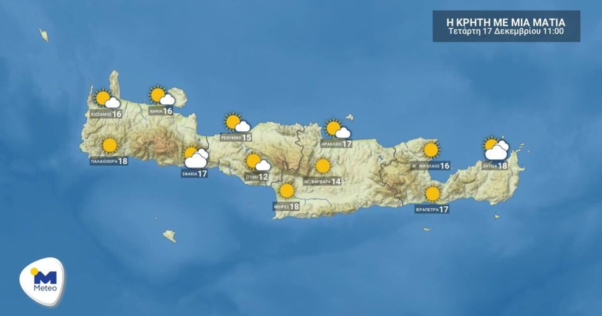 Ο καιρός στην Κρήτη την Τετάρτη 17/12