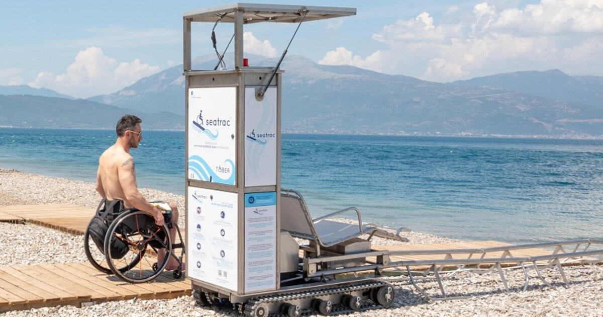 Τα ΑμεΑ μπορούν να έχουν μαζί τους αν επιθυμούν κάποιο βοήθημα και να απολαύσουν τη θάλασσα ανεμπόδιστα με το SEATRAC Mover – διάταξη για αυτόνομη πρόσβαση στη θάλασσα.