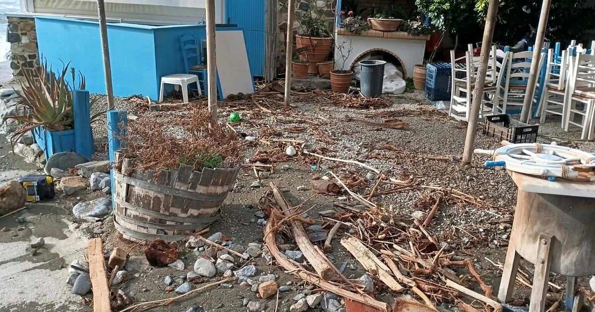Η θάλασσα … βγήκε από τη στεριά και μπήκε σε παραλιακά καταστήματα, παρασύροντας τα πάντα στο διάβα της, ενώ οι αυλές και οι εξωτερικοί χώροι γέμισαν φερτά υλικά!