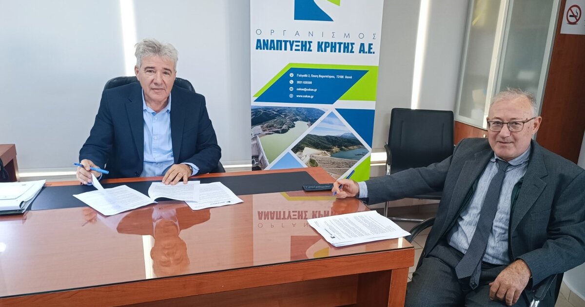 Η σύμβαση που αφορά την εγκατάσταση «Συστήματος Τηλεμετρίας και Ελέγχου Ποιότητας στο Δίκτυο Ύδρευσης της ΔΕΥΑΒΑ Χανίων Στάδιο Α.» υπογράφτηκε την Τετάρτη 14/12/2022 στην έδρα του Οργανισμού Ανάπτυξης Κρήτης στα Χανιά, από τον Διευθύνοντα Σύμβουλο του Ο.Α.Κ. κ. Άρη Παπαδογιάννη και τον Πρόεδρο του Δ.Σ. της Δημοτικής Επιχείρησης Ύδρευσης Αποχέτευσης Βόρειου Άξονα κ. Ευτύχη Μαυρογενη.