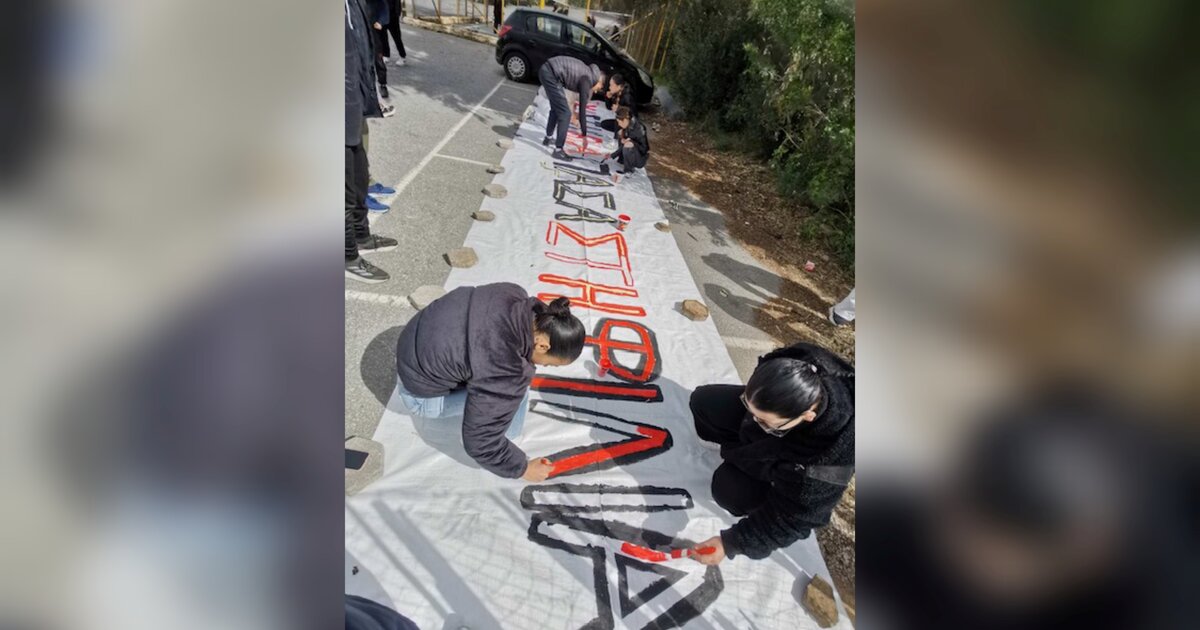Οι μαθητές δημιούργησαν ένα πανό και σχημάτισαν ένα μήνυμα με τα ίδια τους τα σώματα. Βίντεο και φωτογραφίες