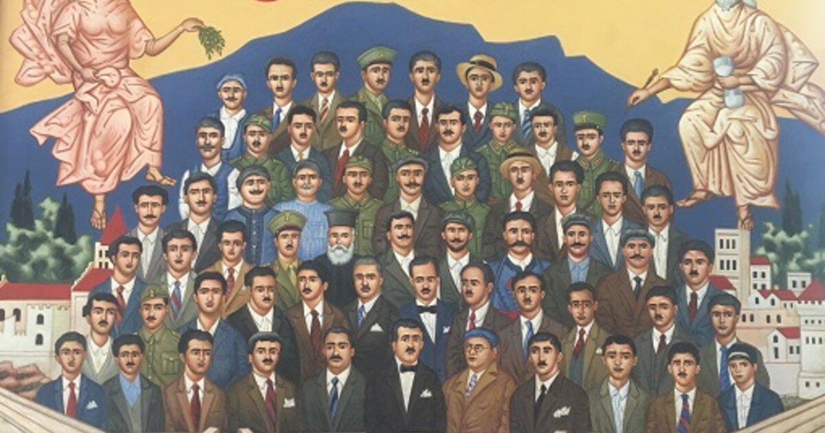 «Νομίζω ότι μια τέτοια προσέγγιση ήταν μέσα στη συλλογιστική του καλλιτέχνη. Να δώσει, δηλαδή, στοιχεία από εκκλησιαστική ζωγραφική. Ο Αριστόδημος Παπαδάκης είναι ένας ζωγράφος που σέβεται πολύ την παράδοση και την τέχνη της παράδοσης και νομίζω ότι ακριβώς επειδή μιλάμε για μαρτυρικές προσωπικότητες, ήταν μέρος της συλλογιστικής του, να τους παρουσιάσει σε ένα πλαίσιο που να θυμίζει εικονογραφία, αγιογραφία, να τους εμφανίζει ως ήρωες-άγιους» πρόσθεσε η κ. Πλεύρη η οποία επισήμανε ότι στόχος είναι αυτός ο πίνακας, με την ολοκλήρωση της μελέτης του εσωτερικού της Πινακοθήκης, να τοποθετηθεί σε εξέχουσα θέση.
