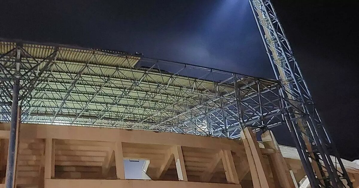 Λόγω μεγάλης κακοκαιρίας ξηλώνεται τμήμα του δυτικού στεγάστρου χωρίς ευτυχώς να υπάρξει κάποιο ατύχημα.