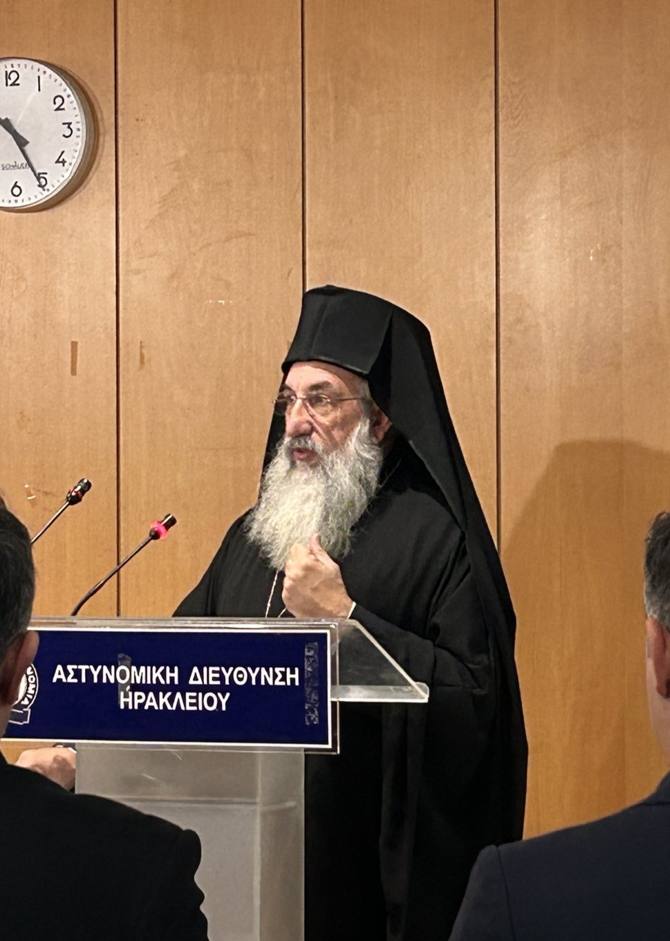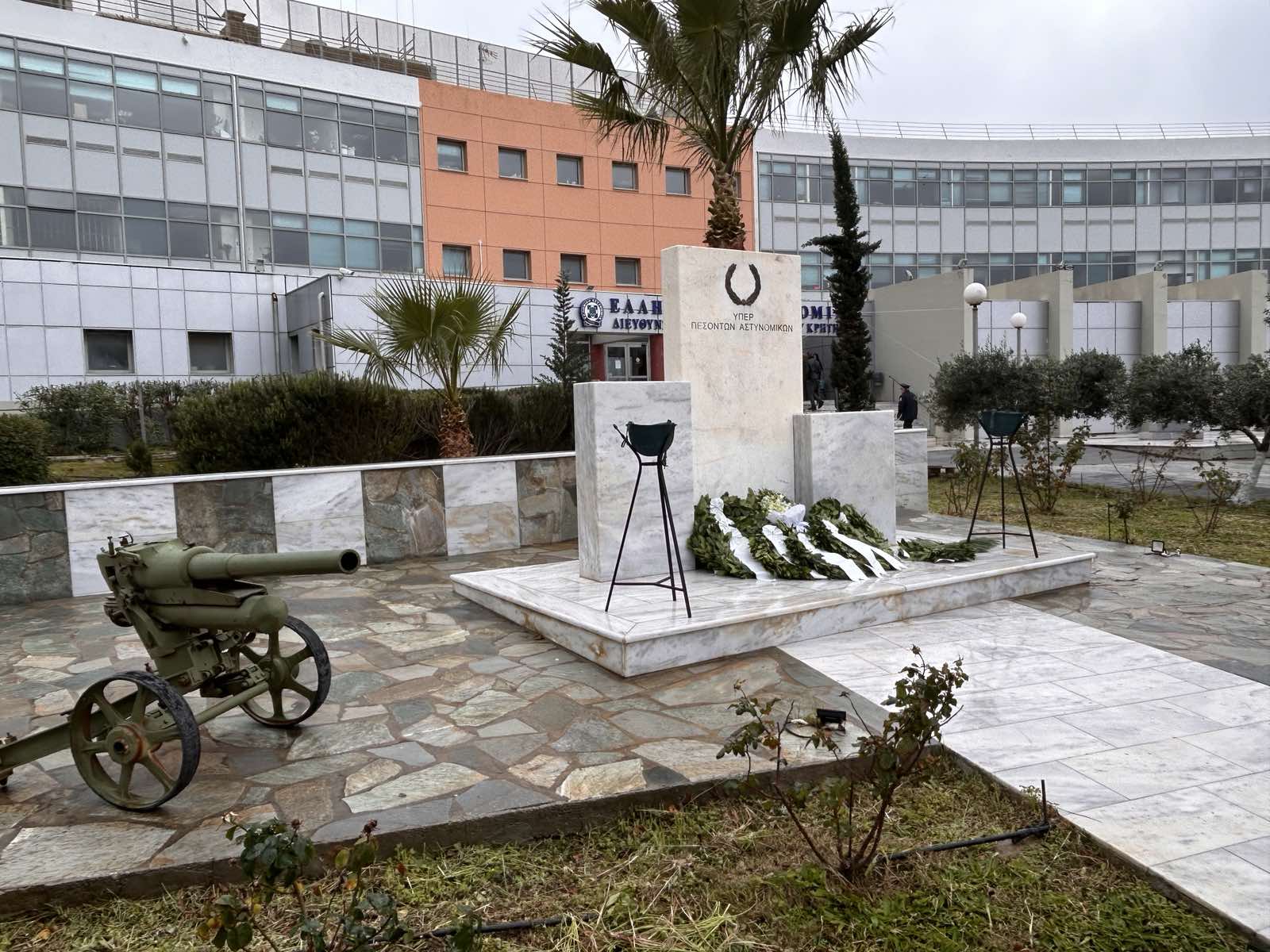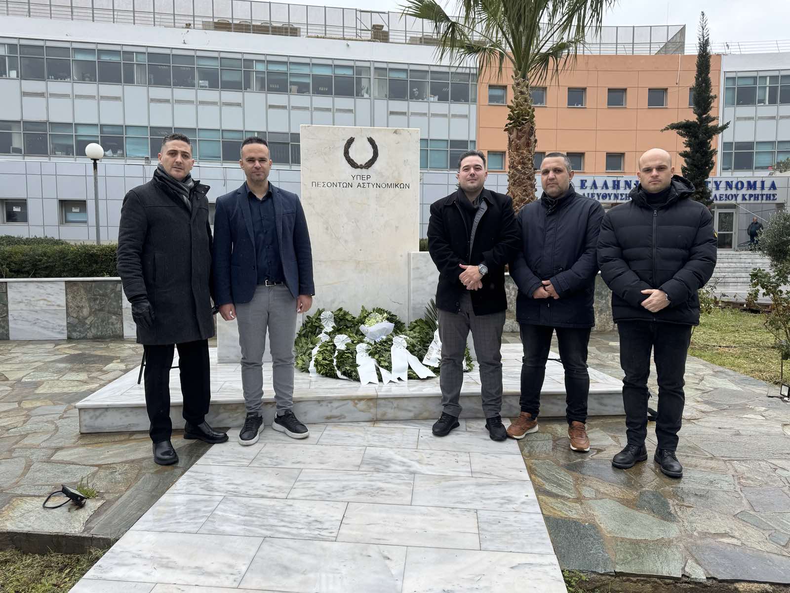 Έτσι και στο Αστυνομικό Μέγαρο Ηρακλείου πραγματοποιήσαμε, πρωτοστατούντος του Σεβασμιότατου Αρχιεπισκόπου Κρήτης κ.κ. Ευγένιου, μια λιτή τελετή παρουσία των οικογενειών των ηρώων νεκρών μας, του Αστυνομικού Διευθυντή Ηρακλείου, εκπροσώπων του Κοινοβουλίου και του Ευρωκοινοβουλίου, εκπροσώπων της Περιφέρειας Κρήτης και του Δήμου Ηρακλείου, εκπροσώπων Ενώσεων και φορέων, συναδέλφων και συμπολιτών μας ενώ με το πέρας της τελετής πραγματοποιήθηκε κατάθεση στεφάνων στο μνημείο υπέρ των πεσόντων αστυνομικών που βρίσκεται στον προαύλιο χώρο του Αστυνομικού Μεγάρου Ηρακλείου.