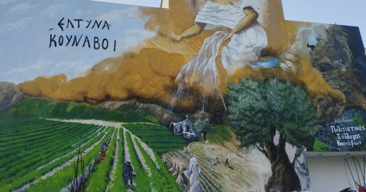 Μ’ ένα πανέμορφο graffiti που τοποθετήθηκε σ’ ένα σημείο κοντά στην πλατεία του χωριού στους Κουνάβους του δήμου Αρχανών Αστερουσίων ο Πολιτιστικός Σύλλογος του οικισμού τιμά την ιστορία των Κουνάβων και παράλληλα παραπέμπει σε παλιές μαγικές εποχές τότε που ο τρύγος και η μητέρα γη με τους θεσπέσιους καρπούς της, τα σταφύλια και τις ελιές έδιναν ζωή σε αυτό το όμορφο χωριό του δήμου που βρίσκεται σε απόσταση μόλις 13 χιλιομέτρων από το Ηράκλειο!
