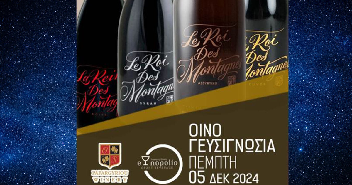 Η εκδήλωση οινογευσιγνωσίας θα πραγματοποιηθεί την ερχόμενη Πέμπτη 5 Δεκεμβρίου 2024, στις 20:30.