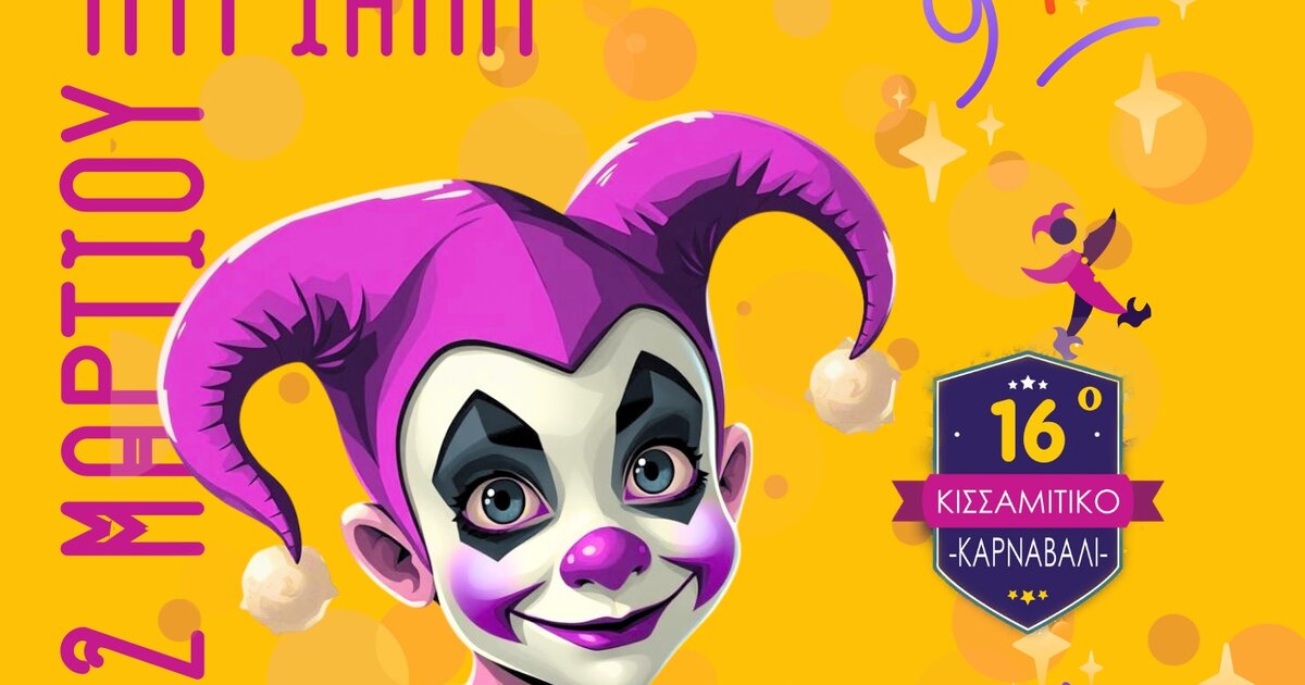 Το 16ο Κισσαμίτικο Καρναβάλι είναι έτοιμο και σας προσκαλεί στη καρναβαλικη παρέλαση που θα πραγματοποιηθεί σήμερα Κυριακή 17 Μαρτίου, στην οδό Σκαλίδη και ώρα έναρξης 15:00, με μουσική, χορό, τραγούδι και ξέφρενο γλέντι! Απαραίτητη προϋπόθεση να είστε ντυμένοι όλοι αποκριάτικα και να οπλιστείτε με κέφι και θετική διάθεση!