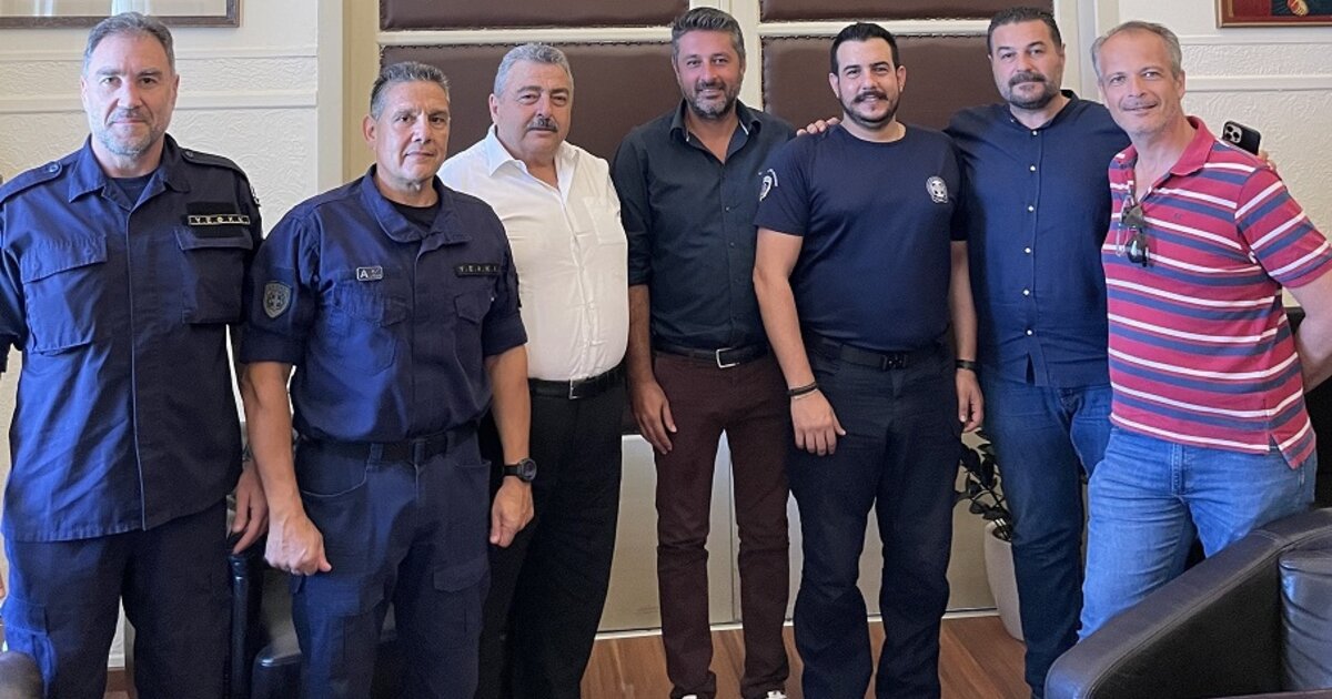 Τον Αντιπεριφερειάρχη Χανίων κ. Νίκο Καλογερή επισκέφθηκε την Τρίτη 30 Ιουλίου 2024 αντιπροσωπεία της Ένωσης Υπαλλήλων Εξωτερικής Φρουράς Καταστημάτων Κράτησης Ν. Χανίων. Στην αντιπροσωπεία συμμετείχαν ο Εμμανουήλ Βαϊδάκης Υπαστυνόμος Β’, Διοικητής ΤΕΦΣΚ Χανίων, ο Παναγιώτης Σταφυλαράκης πρόεδρος Δ.Σ. της Ένωσης Υπαλλήλων Εξωτερικής Φρουράς συνοδευόμενος από μέλη ΔΣ της Ένωσης, ενώ παρών στη συνάντηση ήταν και ο Εντεταλμένος Περιφερειακός Σύμβουλος Πολιτικής Προστασίας Π.Ε. Χανίων Ιωάννης Μανούσακας (Βλαντάς).