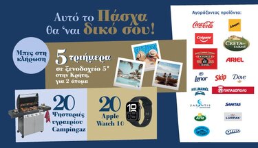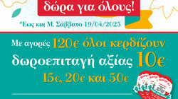 Μέχρι και το Μεγάλο Σάββατο, για κάθε 120€ αγορών σε μία απόδειξη, όλοι κερδίζουν αυτόματα δωροεπιταγή αξίας 10€ ή και μεγαλύτερης αξίας 15€, 20€ ή και 50€ για τις επόμενες αγορές τους