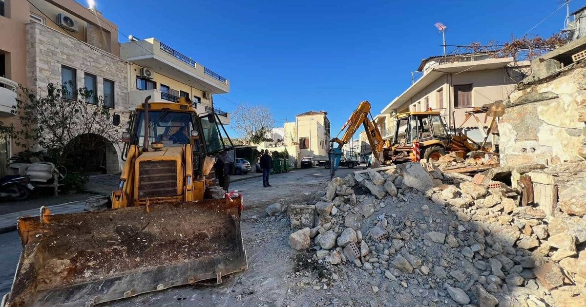 Ολοκληρώθηκαν οι εργασίες του Δήμου Χανίων για την κατεδάφιση ετοιμόρροπου κτηρίου επί της οδού Αλέκου Παναγούλη, στην περιοχή του Κουμπέ.