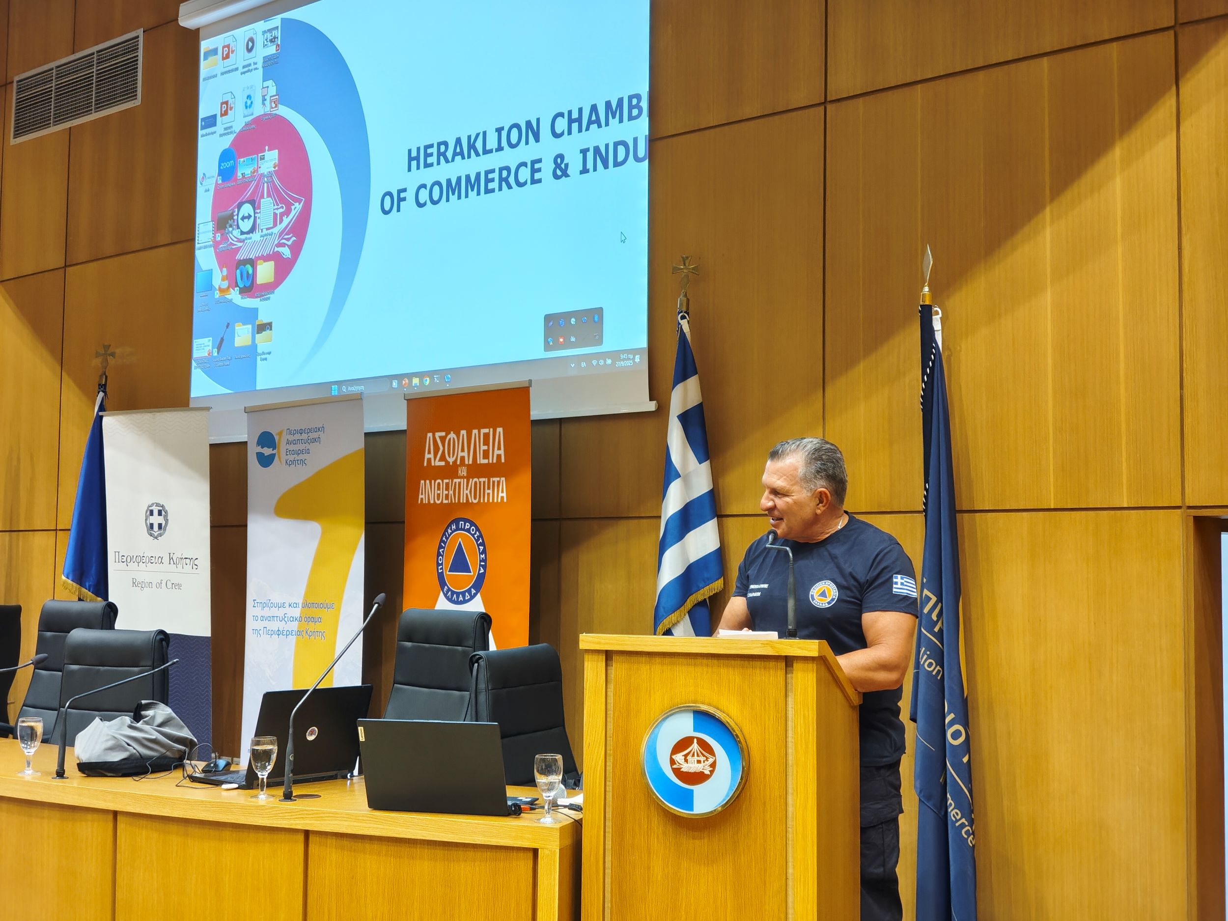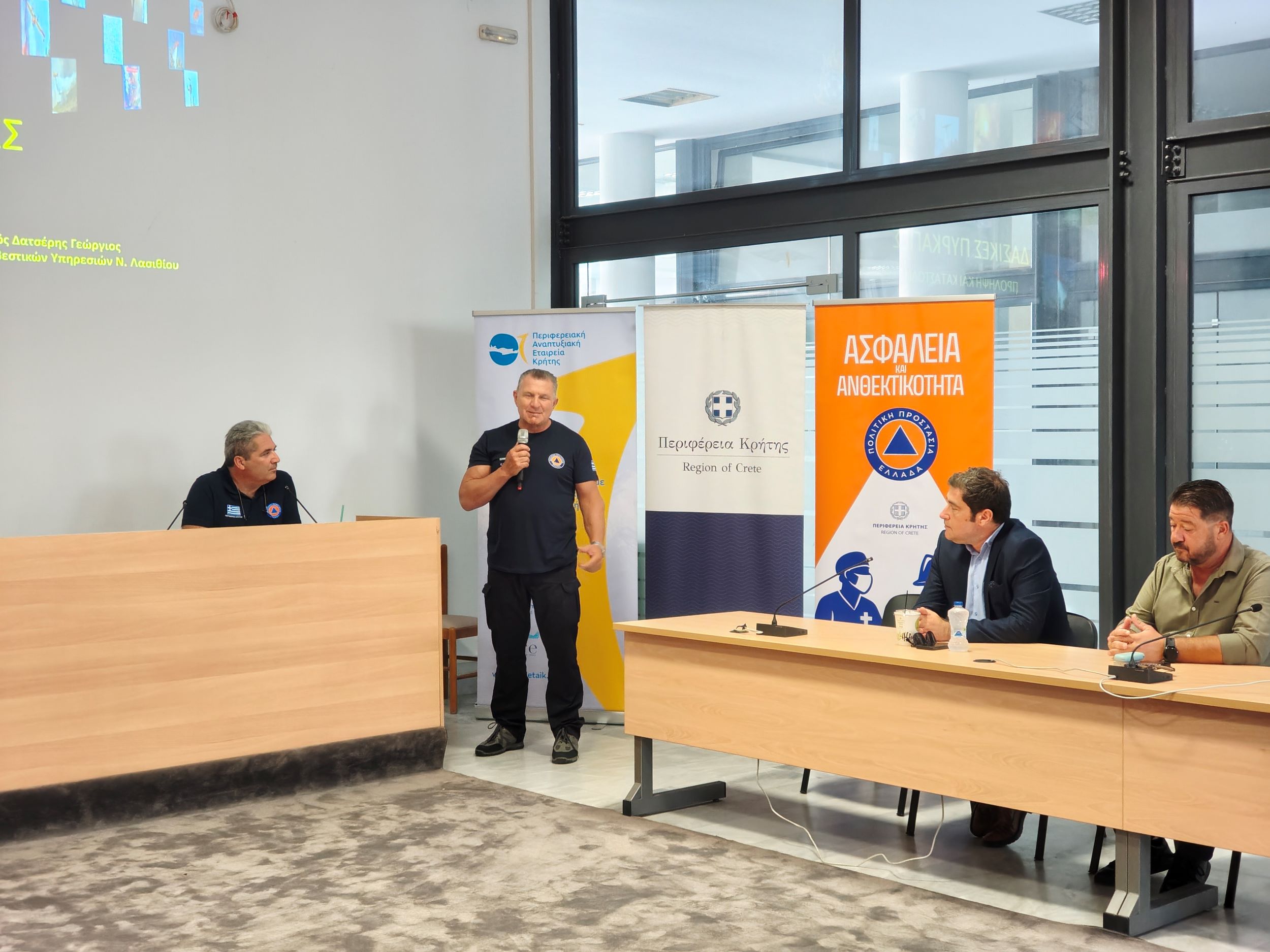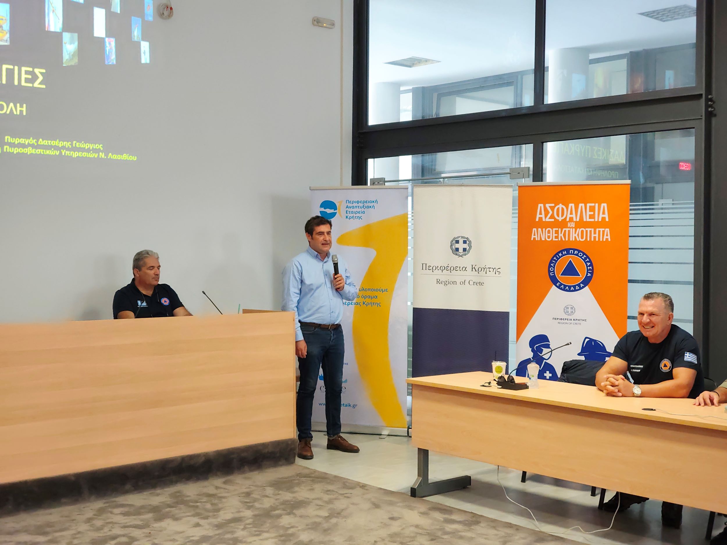 Με μεγάλη επιτυχία ολοκληρώθηκε ο κύκλος ενημερωτικών ημερίδων που διοργάνωσε η Περιφέρεια Κρήτης σε συνεργασία με την Περιφερειακή Αναπτυξιακή Εταιρεία Κρήτης Α.Ε., με αντικείμενο την εκπαίδευση και ενδυνάμωση των εθελοντικών ομάδων σε θέματα Πολιτικής Προστασίας. Οι δύο τελευταίες ημερίδες πραγματοποιήθηκαν με επιτυχία στο Ηράκλειο στις 27 Σεπτεμβρίου στο Επιμελητήριο Ηρακλείου, και στην Ιεράπετρα στις 28 Σεπτεμβρίου στην αίθουσα Δημοτικού Συμβουλίου.