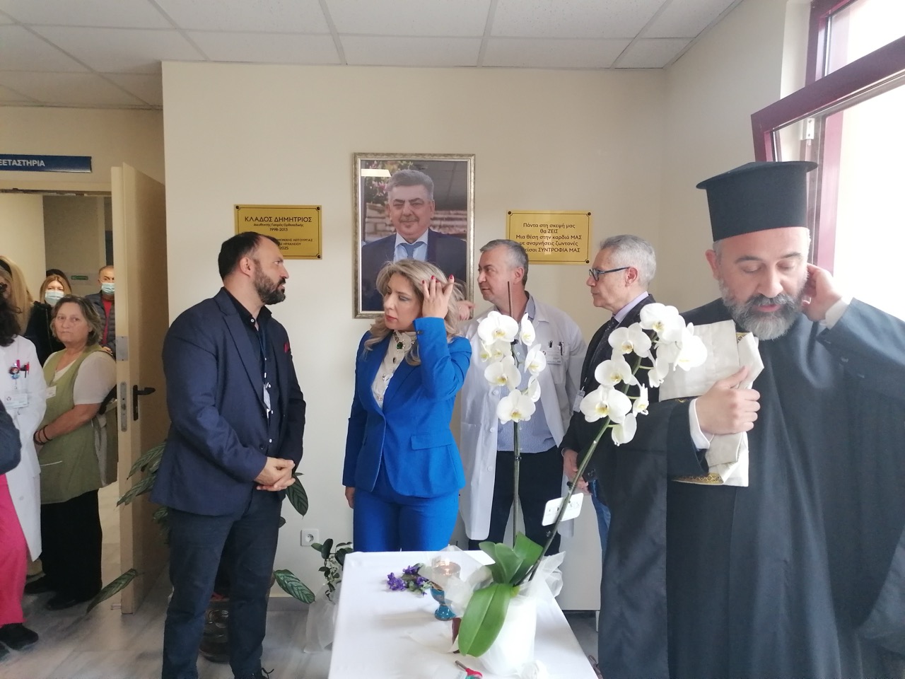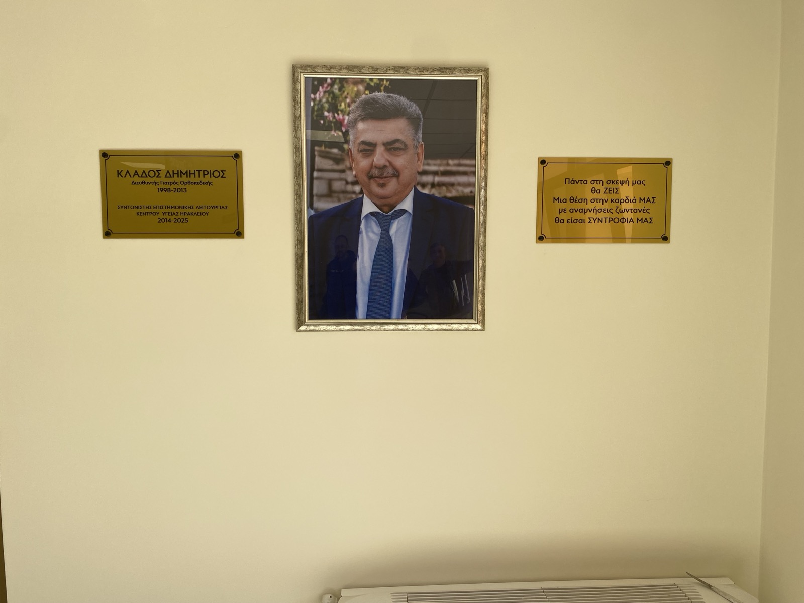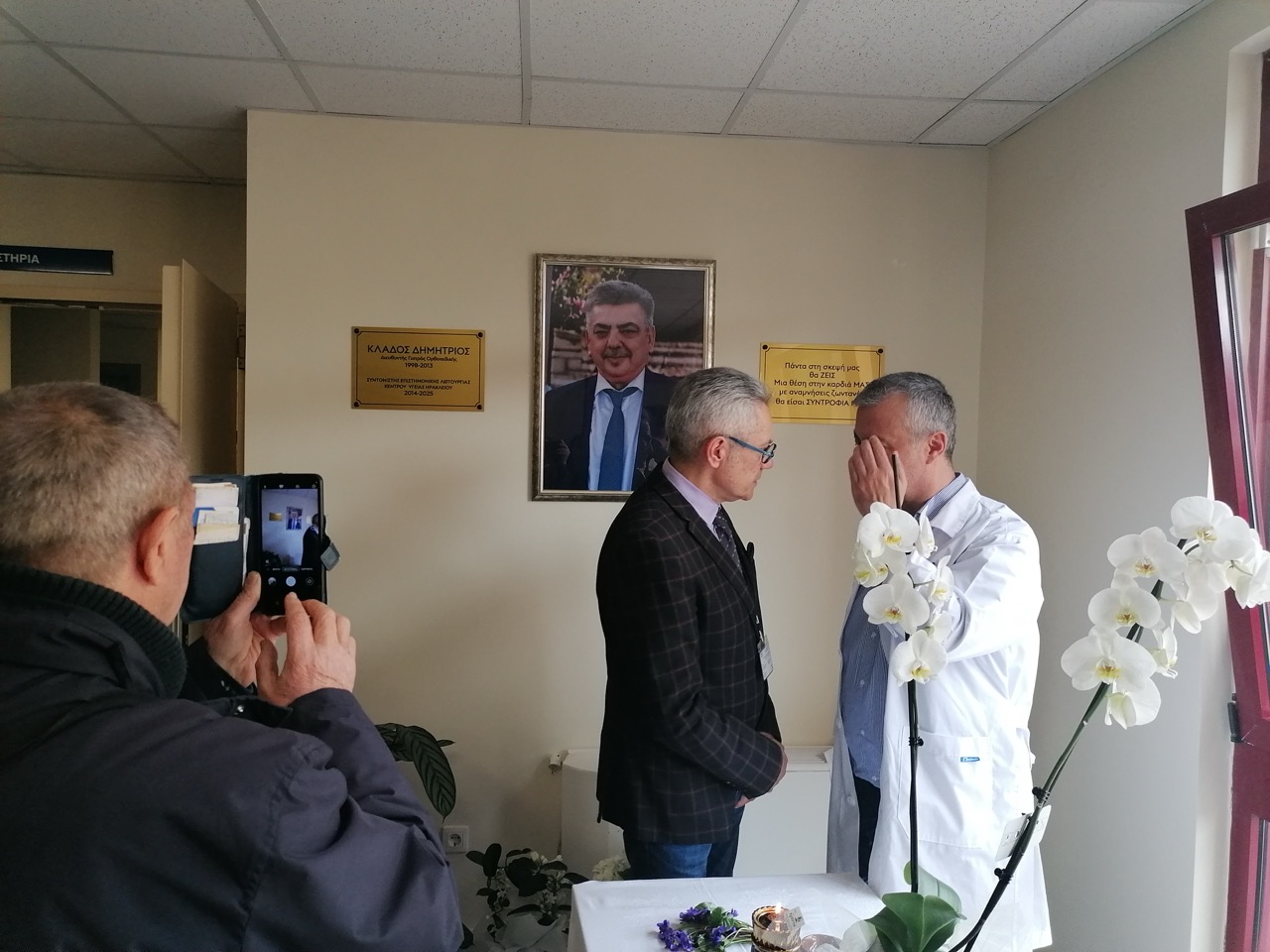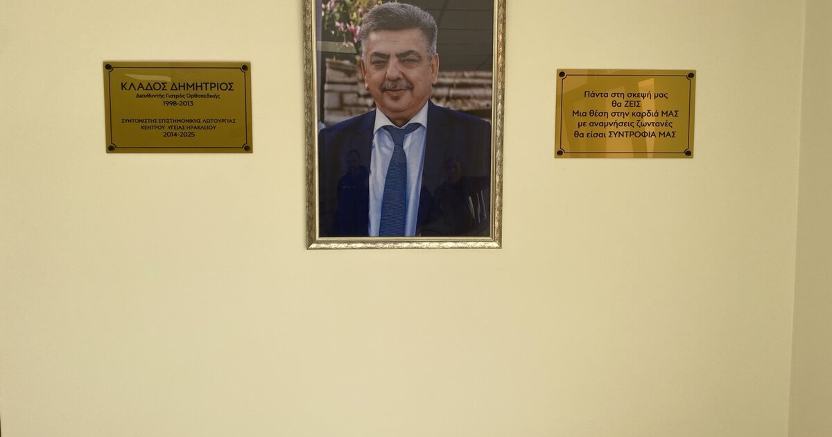 Όπως αναφέρει στην ανακοίνωση ο Σύλλογος Εργαζομένων Πρωτοβάθμιας Φροντίδας Υγείας Κρήτης, «κατά την διάρκεια της τελετής τοποθετήθηκε η φωτογραφία και μια τιμητική πλακέτα του ιατρού ορθοπεδικού και επί σειρά ετών Συντονιστή Επιστημονικής Λειτουργίας του Κέντρου Υγείας Ηρακλείου κ. Δημητρίου Κλάδου.