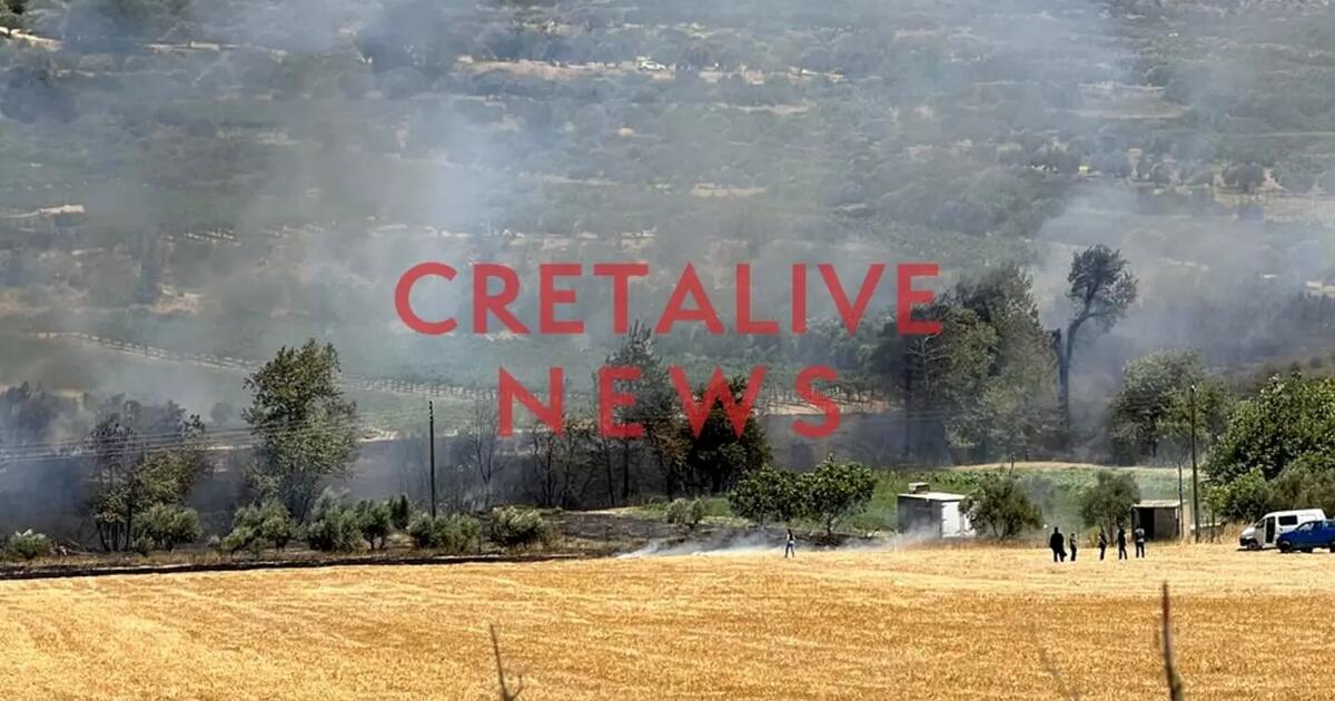 Από τις φλόγες κάηκαν πάνω από 30 στρέμματα γης και υπήρξαν μεγάλες ζημιές σε αγροτικές καλλιέργειες.