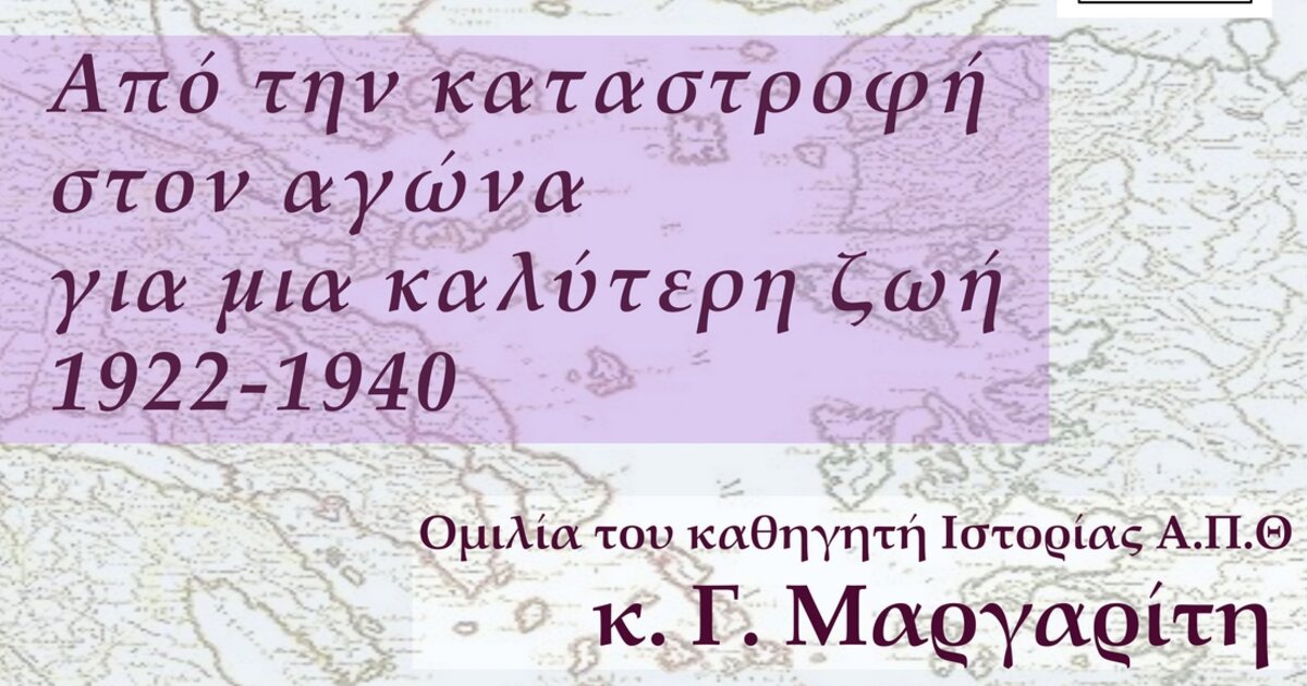 Η Ένωση Φιλολόγων Νομού Ηρακλείου (Ε.Φ.Ν.Η.) με αφορμή την επέτειο των 100 χρόνων από τη μικρασιατική καταστροφή διοργανώνει ομιλία του καθηγητή Σύγχρονης Ιστορίας του Α.Π.Θ., κ. Γιώργου Μαργαρίτη με τίτλο: