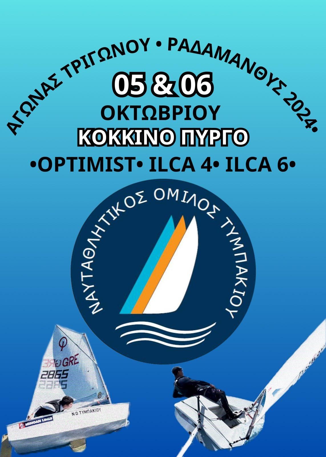 Ο Ναυταθλητικός Όμιλος Τυμπακίου (ΝΟΤ), σε συνεργασία με την Ελληνική Ιστιοπλοϊκή Ομοσπονδία και την Περιφέρεια Κρήτης, έχει την τιμή να ανακοινώσει τη διοργάνωση του Open Πανελλήνιου Διασυλλογικού Αγώνα με την επωνυμία «ΡΑΔΑΜΑΝΘΥΣ 2024», που θα πραγματοποιηθεί στις 5 και 6 Οκτωβρίου 2024, στη θαλάσσια περιοχή του λιμανιού του Κόκκινου Πύργου, Τυμπακίου.
