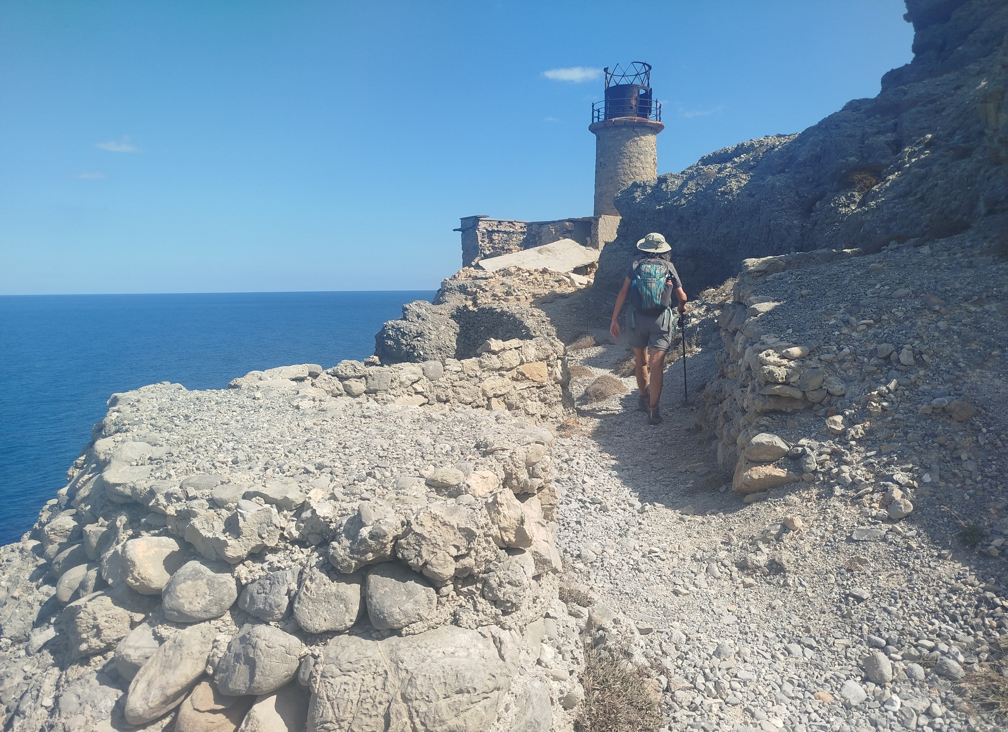 Περπατώντας παράλληλα με τις ακτές κι ατενίζοντας το γαλάζιο πέλαγος θα φτάσουμε κάποτε και στα ερείπια του φάρου του Αφορεσμένου, μέρος που επισκεπτόμαστε συχνά και κάθε φορά δεν αμελούμε να κάνουμε έκκληση στις αρχές να δουν σοβαρά την αναστήλωση του μοναδικού αυτού μνημείου, που ανεγέρθηκε το 1864 από τη Γαλλική Εταιρία Φάρων, για να οδηγεί τα καράβια με ασφάλεια στον κόλπο του Μεραμπέλλου μακριά από τη μόνιμα φουρτουνιασμένη θάλασσα, που αποτέλεσε και μέρος του θρύλου για το πώς πήρε το όνομά της η περιοχή.