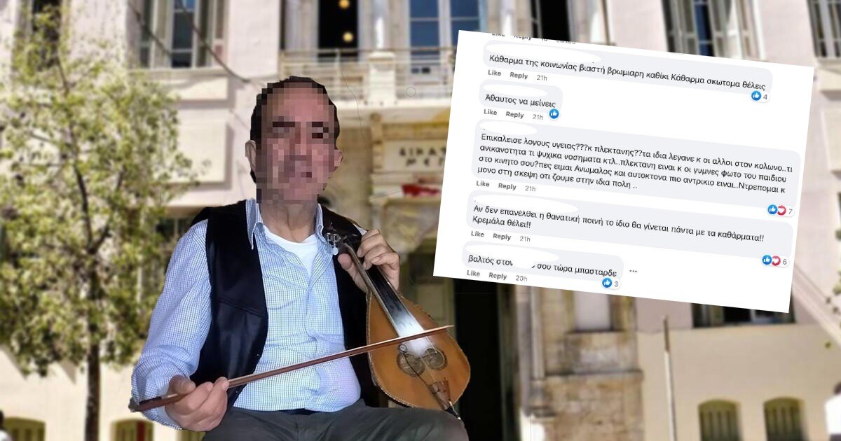 Έντονες είναι οι αντιδράσεις των χρηστών στα social media, οι οποίοι από τις πρώτες κιόλας στιγμές που αναγνώρισαν το πρόσωπο του 66χρονου λυράρη που κατηγορείται, μεταξύ άλλων, κακουργηματικών πράξεων, για βιασμό και μαστροπεία σε βάρος ενός ανήλικου αγοριού .
