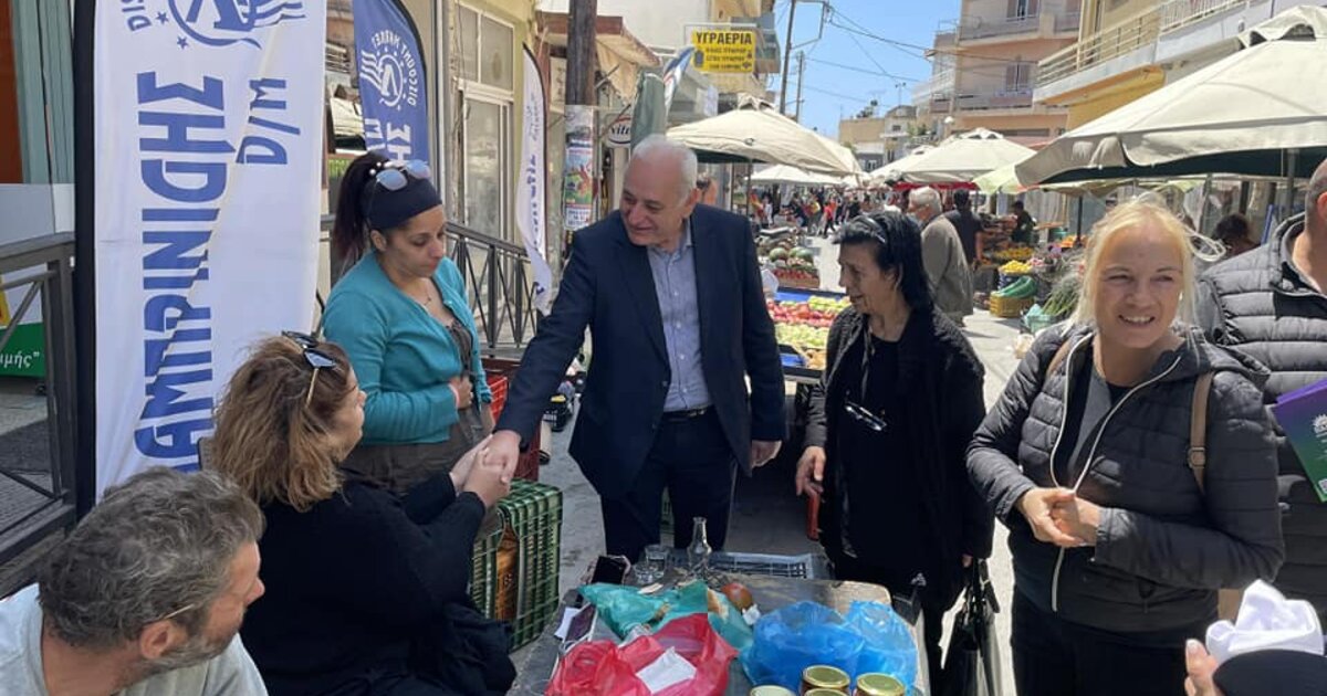 Ο υποψήφιος Βουλευτής με το ΠΑΣΟΚ - Κίνημα Αλλαγής στο Ν. Ηρακλείου, συνομίλησε με αγρότες, παραγωγούς, κτηνοτρόφους, εργαζόμενους, ανθρώπους του μόχθου. Παράλληλα πραγματοποίησε επισκέψεις στην ΒΙΑΝΑΜΕ ΑΕ στην οποία συσκευάζονται και διακινούνται πιστοποιημένα βιολογικά προϊόντα και στον Αγροτοβιομηχανικό Συνεταιρισμό Τυμπακίου που διακινεί ένα μεγάλο μέρος της παραγωγής κηπευτικών στην Ελλάδα και το Εξωτερικό.