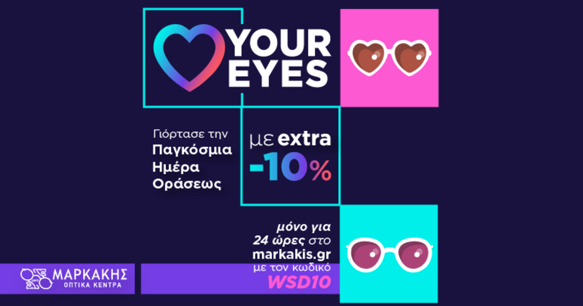 Παγκόσμια Ημέρα Όρασης: Αγάπη για τα μάτια μας με -10% σε όλα τα γυαλιά ηλίου και οράσεως στο markakis.gr