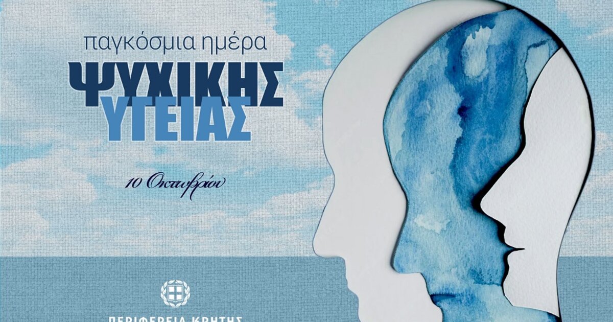 Με αφορμή την Παγκόσμια Ημέρα Ψυχικής Υγείας, η Περιφέρεια Κρήτης αναδεικνύει τη σημασία της πρόληψης, της ευαισθητοποίησης και της έγκαιρης υποστήριξης σε ζητήματα ψυχικής υγείας, ιδιαίτερα στις νεότερες ηλικίες.