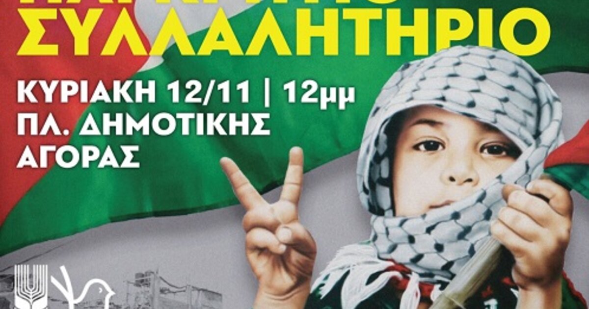Κάλεσμα στα συλλαλητήρια που θα πραγματοποιηθούν την ερχόμενη Κυριακή 12 του Νοέμβρη, στις 12 μ.μ σε όλη την Κρήτη κατά του πολέμου στην Παλαιστίνη, απευθύνουν φορείς και συλλογικότητες.