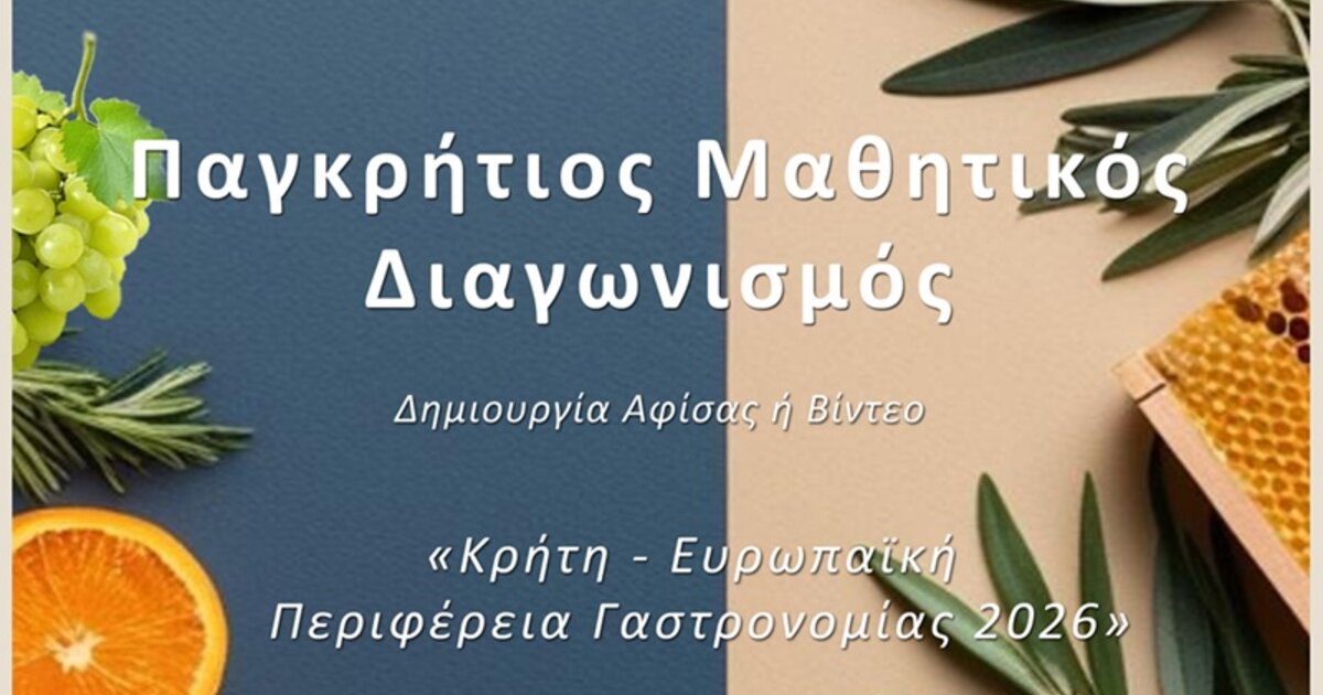 Η Περιφερειακή Διεύθυνση Εκπαίδευσης Κρήτης σε συνεργασία με την Περιφέρεια Κρήτης και την Εκπαιδευτική Αναπτυξιακή ΠΛΟΗΓΟΣ, στο πλαίσιο της προετοιμασίας της Κρήτης ως Ευρωπαϊκή Περιφέρεια Γαστρονομίας για το 2026, προκηρύσσει τον Παγκρήτιο Μαθητικό Διαγωνισμό με τίτλο «Κρήτη - Ευρωπαϊκή Περιφέρεια Γαστρονομίας 2026». Ο διαγωνισμός είναι αφιερωμένος στον Νίκο Ψιλάκη, έναν πιστό ερευνητή της κρητικής γαστρονομίας και του πολιτισμού, ο οποίος αφιέρωσε μεγάλο μέρος του έργου του στη διάσωση και την προβολή τους.