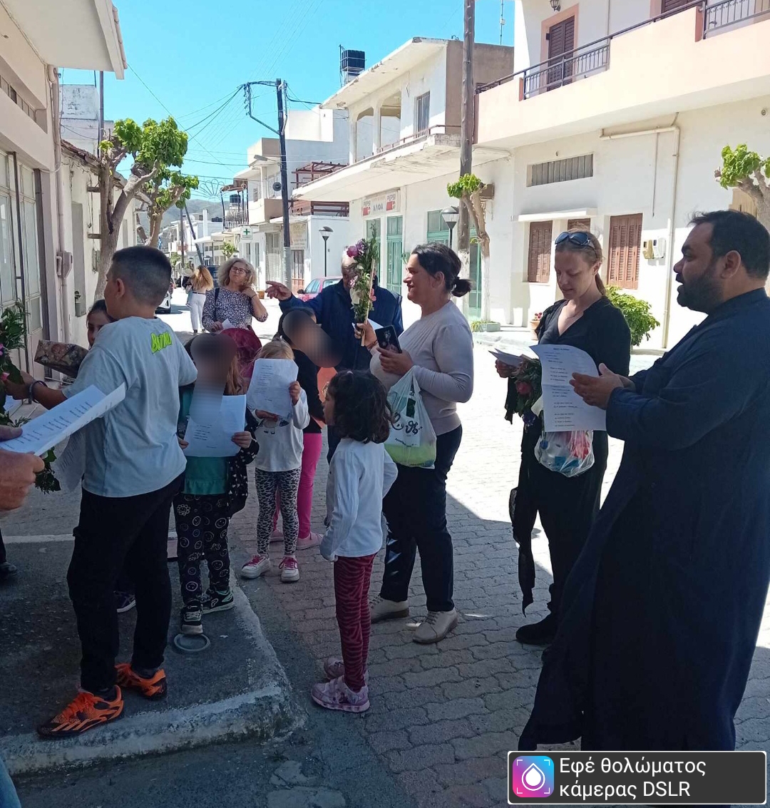 Τα σπίτια και τα σοκάκια του χωριού «πλημμύρισαν» με παιδικές μελωδίες βάζοντας όλους στο γιορτινό κλίμα των ημερών του Πάσχα. Παράλληλα μοίραστηκαν ευχές για υγεία και ευημερία προς τους κατοίκους του χωριού. Με αυτόν τον τρόπο, τα παιδιά διαδίδουν τη χαρά και την Ανάσταση που συνδέονται με την εορτή του Λαζάρου, ενώ παράλληλα δημιουργούν μια ατμόσφαιρα γεμάτη ευχές και αισιοδοξία για τον επερχόμενο Άγιο Πάσχα.