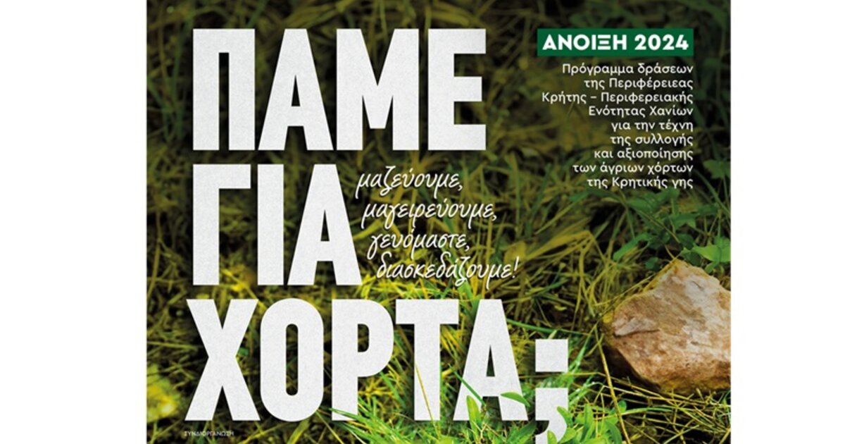 Η Περιφέρεια Κρήτης-Περιφερειακή Ενότητα Χανίων σε συνεργασία με Τοπικούς Συλλόγους της Π.Ε., διοργανώνει πρόγραμμα δράσεων για τη διάδοση της Τέχνης της Συλλογής και Αξιοποίησης των Άγριων Χόρτων της Κρητικής Γης, την Άνοιξη του 2024.