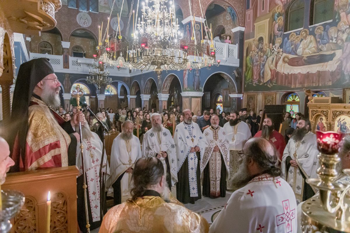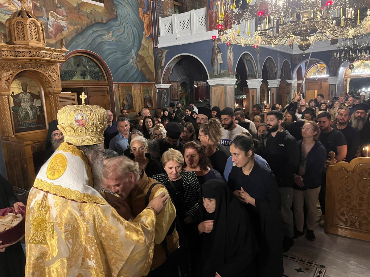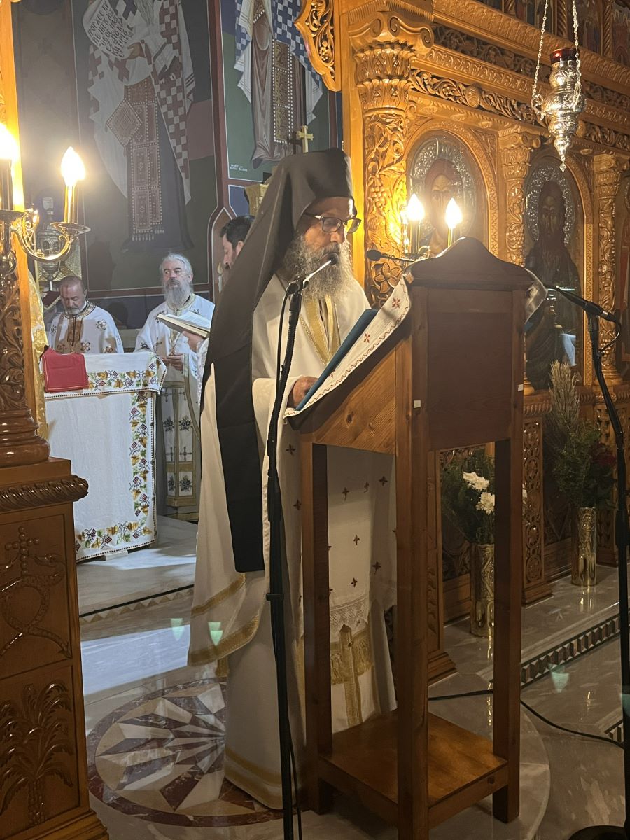 Τον Θείο λόγο, κατόπιν προτροπής του Σεβασμιωτάτου Μητροπολίτου μας κ. Προδρόμου, κήρυξε εμπνευσμένα, ομιλώντας για το μαρτύριο του αίματος και το μαρτύριο της συνειδήσεως, ο Πανοσιολ. Αρχιμανδρίτης Τιμόθεος Παναγιωτάκης, Ηγούμενος της Ιεράς Πατριαρχικής και Σταυροπηγιακής Μονής Τιμίου Σταυρού Βωσάκου.