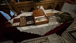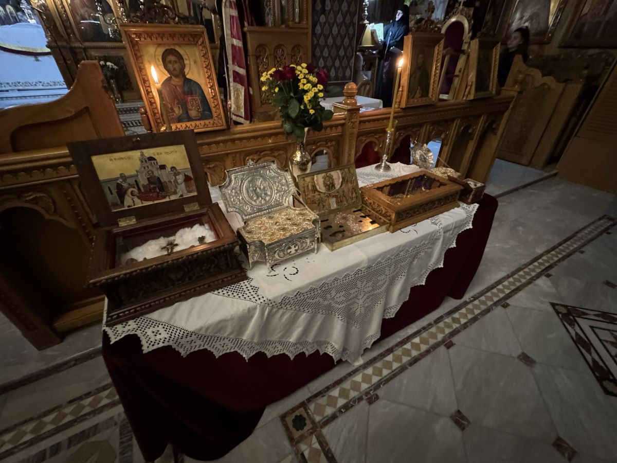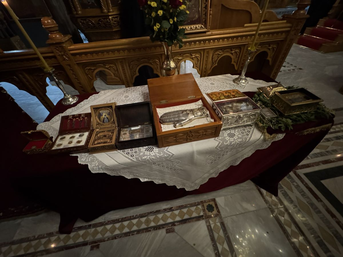 Κατά τη διάρκεια της Ιεράς Αγρυπνίας τέθηκαν σε προσκύνηση οι Τίμιες Κάρες των Αγίων Τεσσάρων Νεομαρτύρων καθώς και Ιερά Λείψανα διαφόρων Αγίων, τα οποία φυλάσσονται στις Ιερές Μονές της Τοπικής μας Εκκλησίας και μεταφέρθηκαν στον Ιερό Ναό ειδικά για την Ιερά Αγρυπνία.