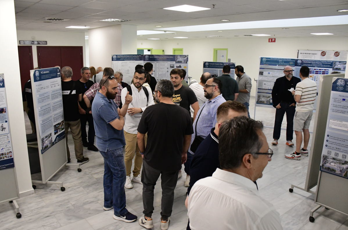 Η εκδήλωση ξεκίνησε με Έκθεση Πόστερ στο φουαγιέ του Αμφιθεάτρου “Νίκος Πετρίδης” με τίτλο “Ερευνητικά επιτεύγματα του Τμήματος Επιστήμης Υπολογιστών και η διαχρονική συνέργεια με το Ινστιτούτο Πληροφορικής του ΙΤΕ” κατά την οποία οι προσκεκλημένοι είχαν την ευκαιρία να αλληλεπιδράσουν με το διδακτικό και ερευνητικό προσωπικό του Τμήματος.