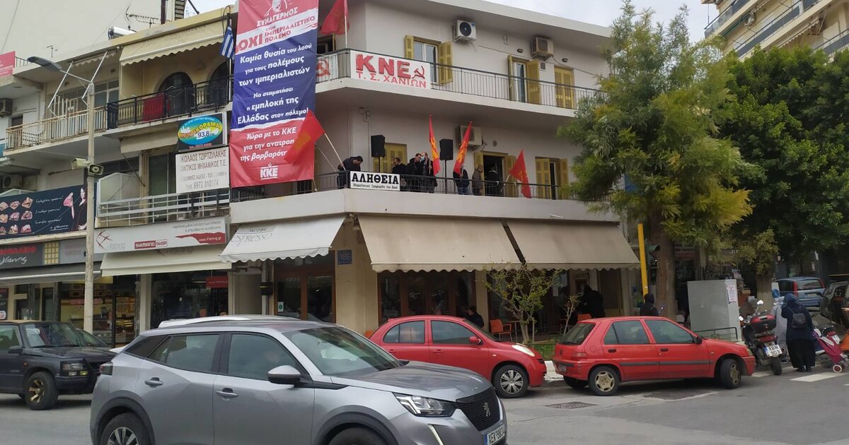 Μέλη του ΚΚΕ και της ΚΝΕ τοποθέτησαν γιγαντοπανό στα γραφεία του ΚΚΕ στα Χανιά. Υποδέχτηκαν με αυτόν τον τρόπο το αεροπλανοφόρο Τρούμαν που καταπλέει στην βάση της Σούδας. Το ΚΚΕ καλεί τον χανιώτικο λαό, με όλους τους τρόπους να αντιταχθεί στην ολοένα μεγαλύτερη εμπλοκή της χώρας μας στον ιμπεριαλιαστικό πόλεμο που μαίνεται στην Ουκρανία. Με ευθύνη της κυβέρνησης της Ν.Δ και την ουσιαστική συναίνεση όλων των αστικών κομμάτων η χώρα μας συμμετέχει ενεργά στις πολεμικές επιχειρήσεις των ιμπεριαλιστών!