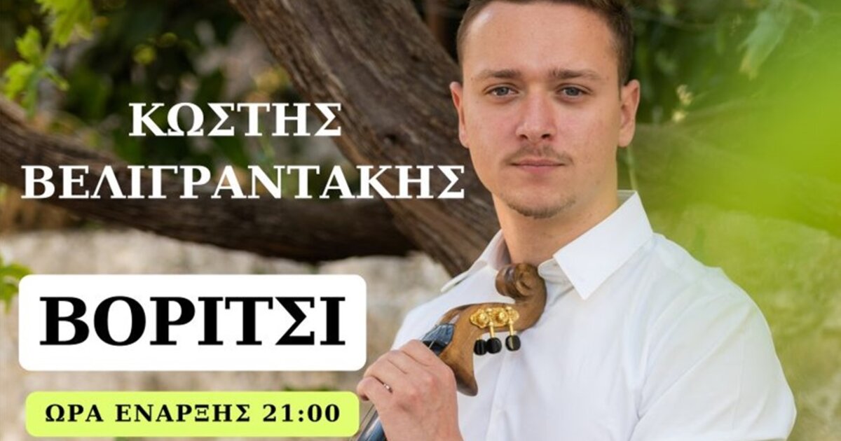 Μεγάλο παραδοσιακό κρητικό γλέντι με τον Κωστή Βελιγραντάκη, θα πραγματοποιηθεί το Σάββατο 7 Σεπτεμβρίου 2024 στο Βορίτσι Χερσονήσου.
