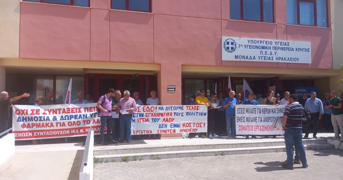 Παράσταση διαμαρτυρίας πραγματοποίησαν σήμερα τα σωματεία : Ένωση Ιδιωτικών Υπαλλήλων Ηρακλείου, Συνδικάτο οικοδόμων Ν.Ηρακλείου , το Συνδικάτο γάλακτος τροφίμων και ποτών και το σωματείο εργαζομένων ΠΑΓΝΗ στην 7η ΥΠΕ.