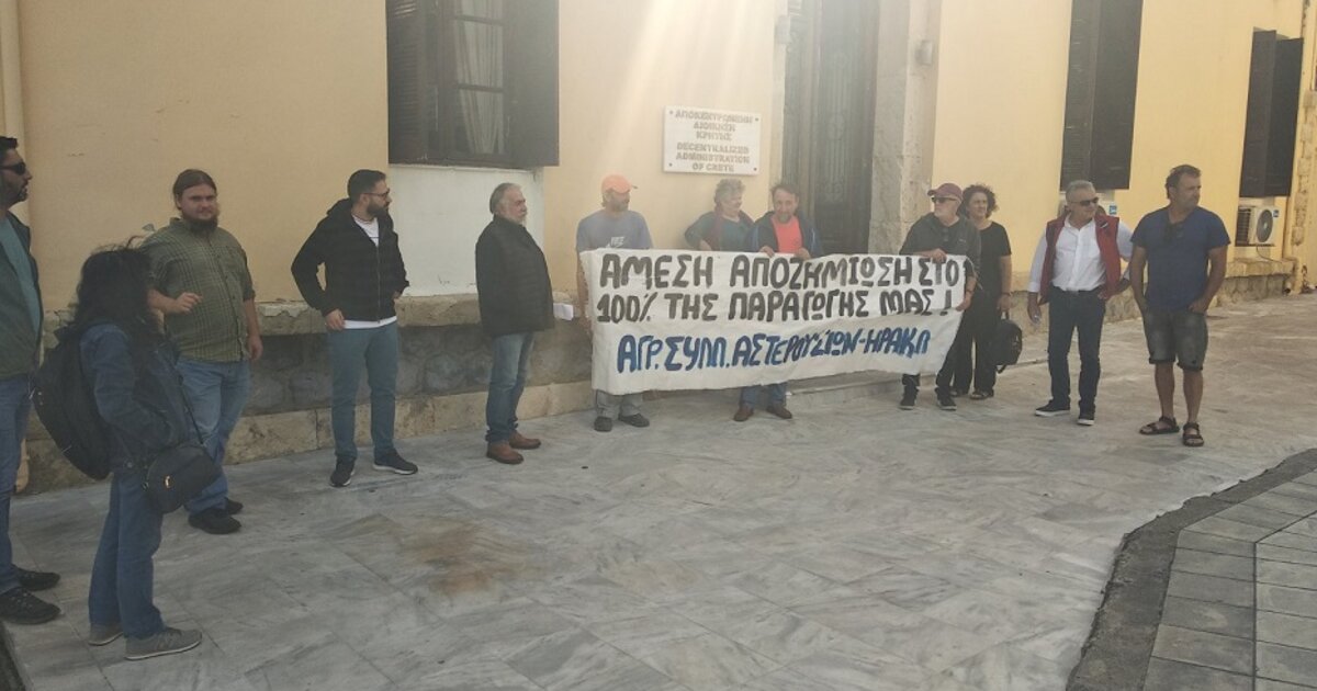 Παράσταση διαμαρτυρίας πραγματοποιήθηκε από τους αγροτικούς συλλόγους Aστερουσίων και Ηρακλείου στο υποκατάστημα του ΕΛΓΑ στο Ηράκλειο καθώς και στην Αποκεντρωμένη διοίκηση Κρήτης.