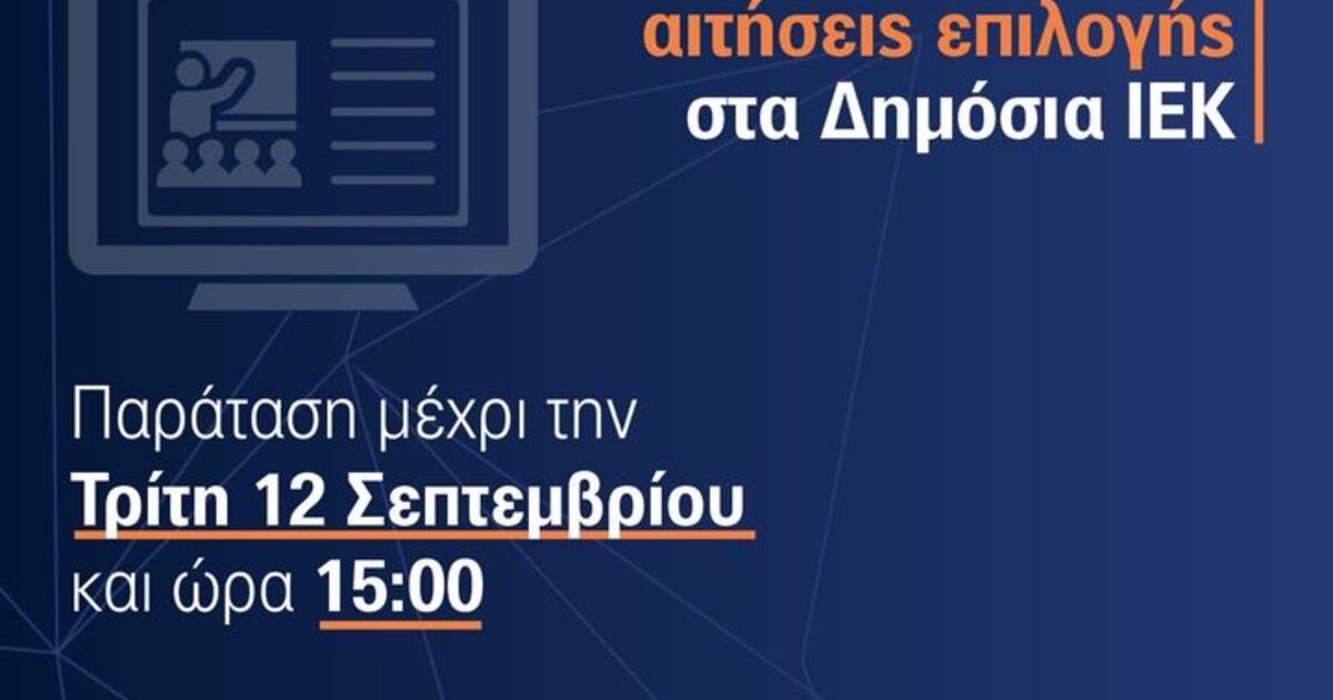 παράταση εγγραφών και αιτήσεων επιλογής στα Ι.Ε.Κ. αρμοδιότητας Υ.ΠΑΙ.Θ.Α.