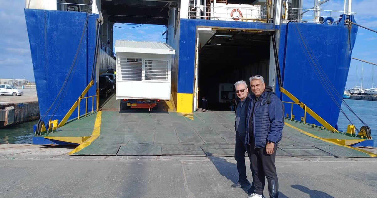 Στο λιμάνι ο Δήμαρχος Ηρακλείου Αλέξης Καλοκαιρινός για την παραλαβή νέων αιθουσών που θα εγκατασταθούν στο χώρο όπου λειτουργήσουν τα Ειδικά Σχολεία ΕΝΕΕΓΥΛ και ΕΕΕΕΚ
