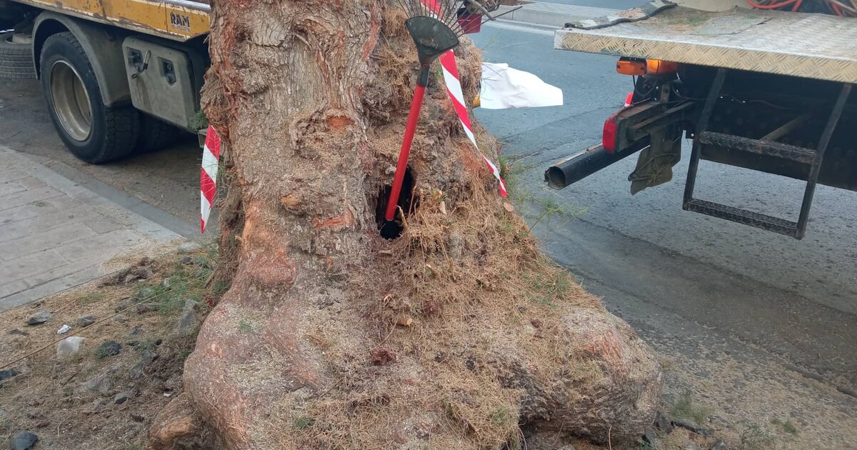 Συνεργεία του Δήμου βρέθηκαν στο σημείο και προχώρησαν στην αποκοπή του επικίνδυνου δέντρου που, όπως φαίνεται στις φωτογραφίες και το βίντεο του Cretalive, εσωτερικά είχε σαπίσει και υπήρχε άμεσος κίνδυνος για περαστικούς και οδηγούς...